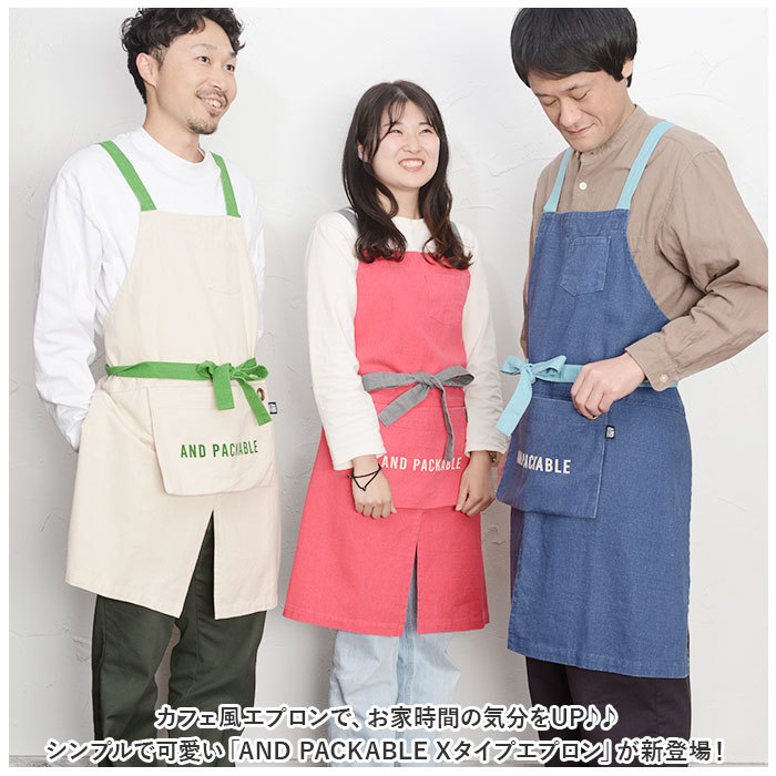 商品説明 | ・・カフェ風エプロンで、お家時間の気分をUP♪♪シンプルで可愛い「AND PACKABLE Xタイプエプロン」が新登場! ・【おしゃれデザイン】 ・まるでカフェの店員さんのような、シンプルで可愛いおしゃれなデザイン♪身に着けるだけで気分もUP!お家時間や家事タイムをもっと楽しく! ・【Xタイプ】 ・肩紐はずり落ちがしにくいXタイプを採用。後姿もちゃんと可愛い☆肩紐は2段階で長さ調節が可能。 ・【大きなポケット】 ・デザインのアクセントにもなっている大きなポケット。大きなロゴがおしゃれでスマホやレシピなどをサッと入れられて便利◎ ・【センタースリット】 ・センター部分にがスリットがあり、動きやすさにも配慮。可愛いだけではない機能性も魅力。 ・【コットン100%】 ・生地には天然素材のコットンを100%使用。自然な風合いを楽しめ、洗濯するたびに愛着が沸く、そんなアイテム。 ・【選べるカラー】 ・絶妙なカラー使いがオシャレ☆どれも可愛いので迷っちゃう! ・【ユニセックOK】 ・性別年齢を問わずに使えるデザインなので、ユニセックスで使える。カップルでお揃いにしたり、共有するのもGOOD。 |