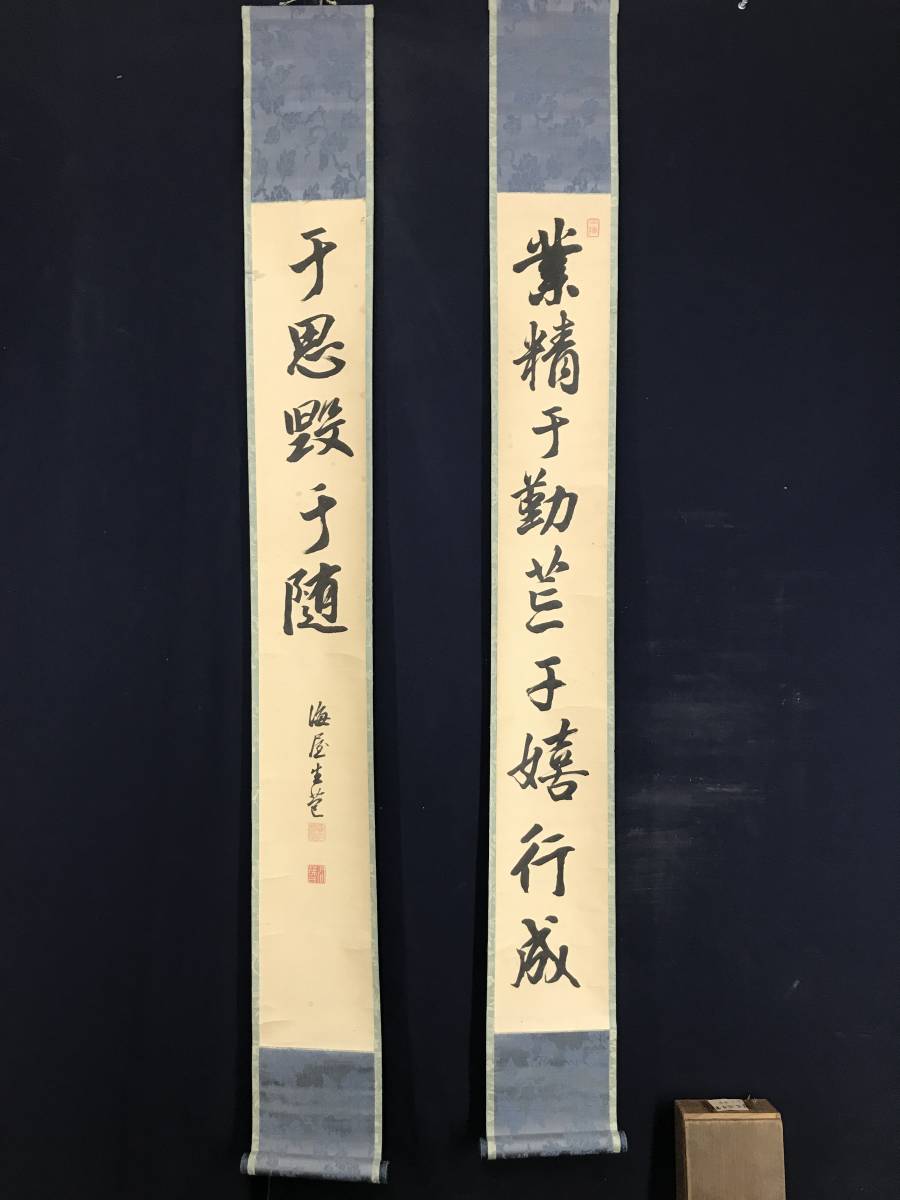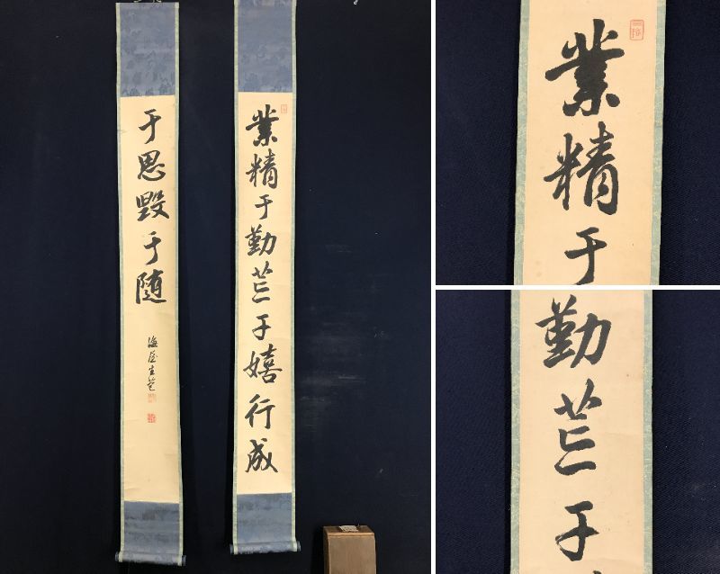 真作/貫名海屋/書/対幅/業精于勤荒于嬉/行成于思毀于隨//掛軸☆宝船☆AD-289