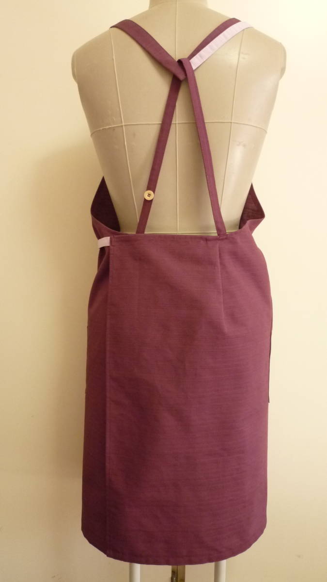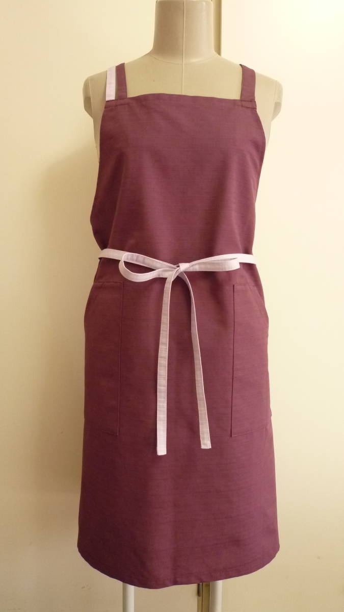 [ネコポス]ハンドメイド*綿ドビーエプロン・えんじ×ラベンダー