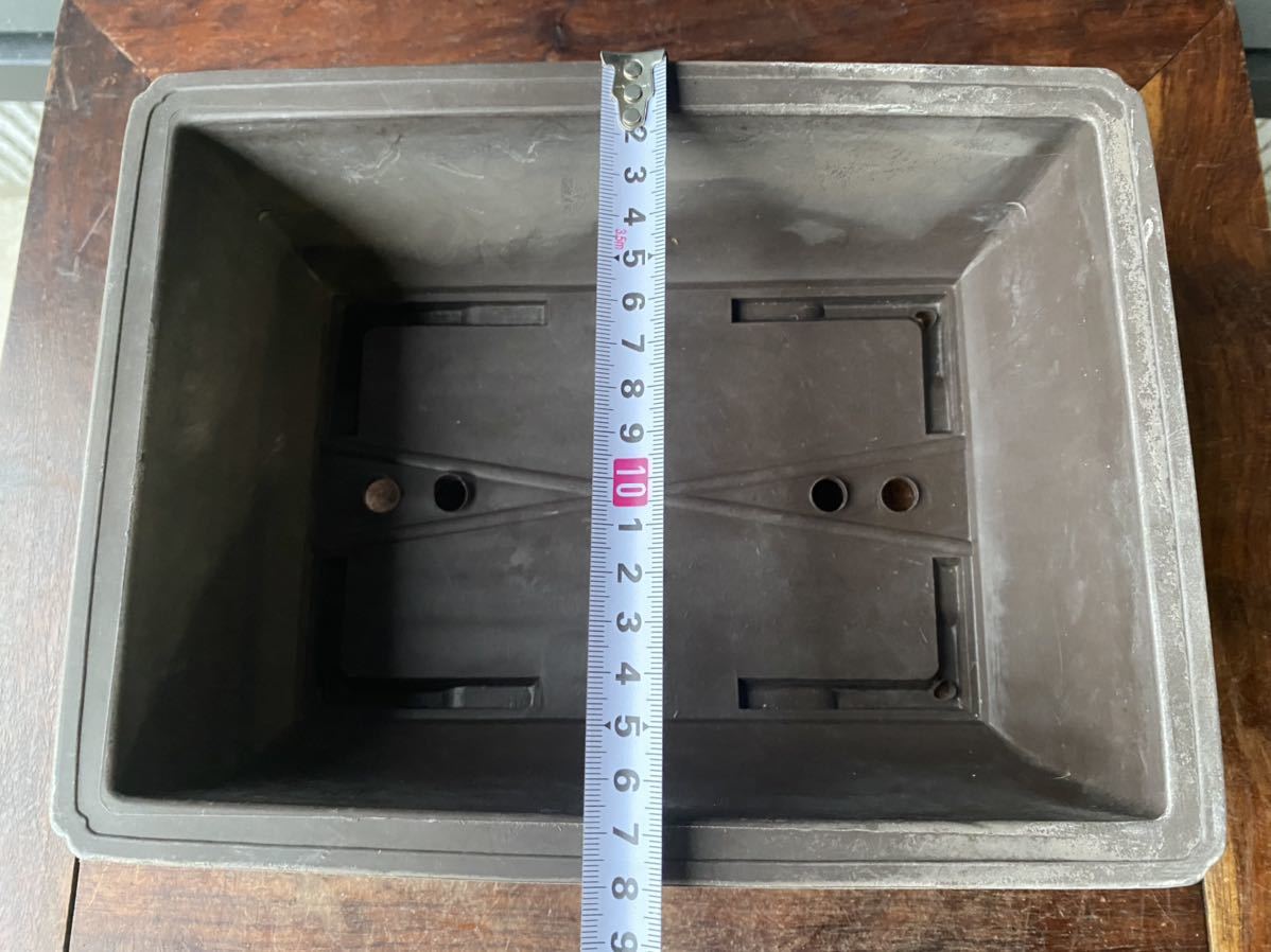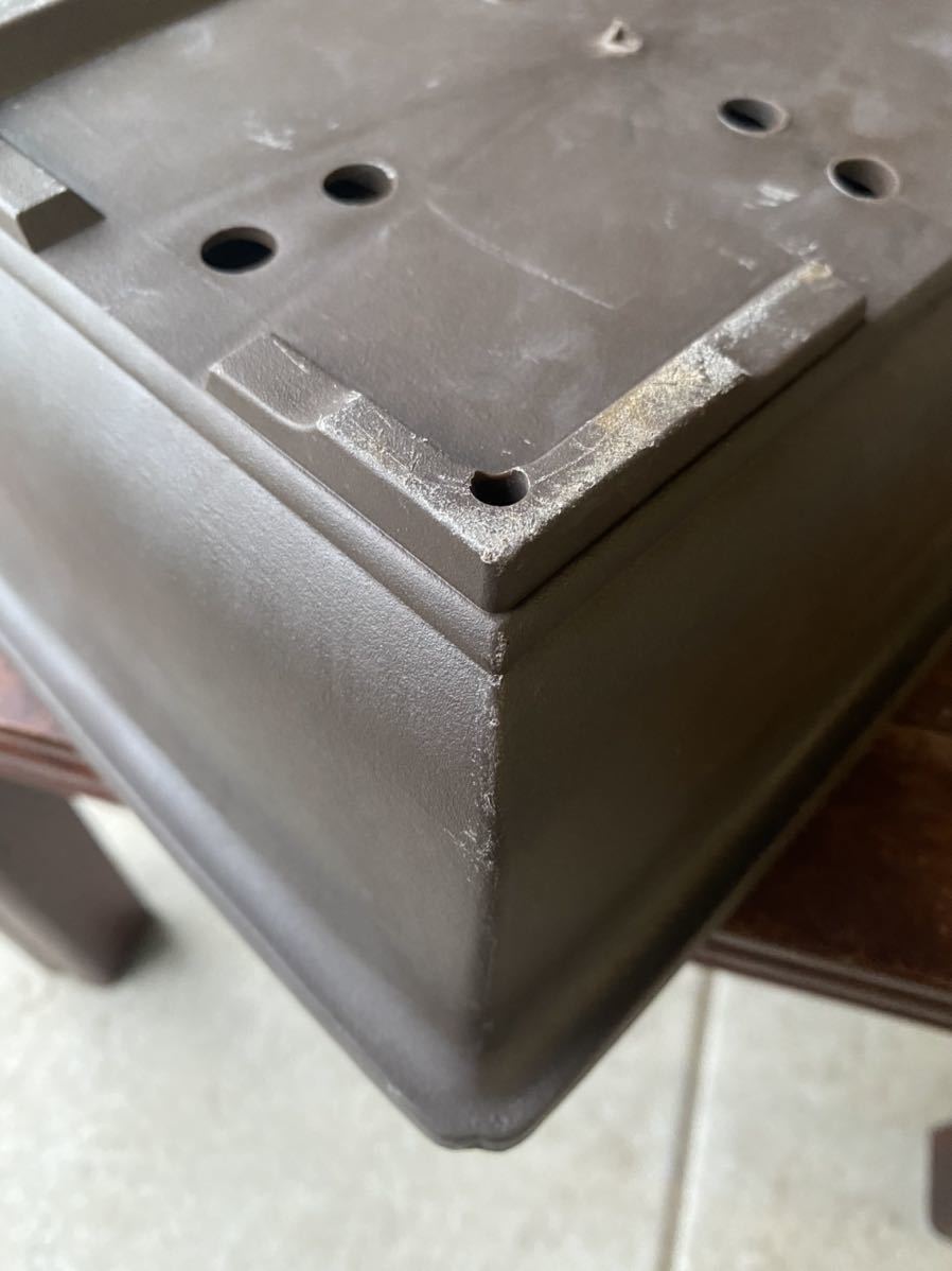 擦り傷があり、少し歪な形をしています。屋外で保管していたので水あかや土汚れなどが多少あります。詳しくは画像をご確認ください。