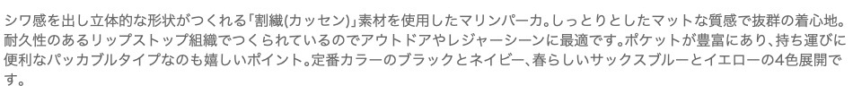 生地は耐久性のあるリップストップ組織でつくられているのでアウトドアやレジャーシーンに最適です。