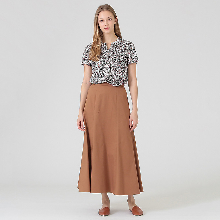 裾に向けて広がるフレアースカートが優雅なムードです。