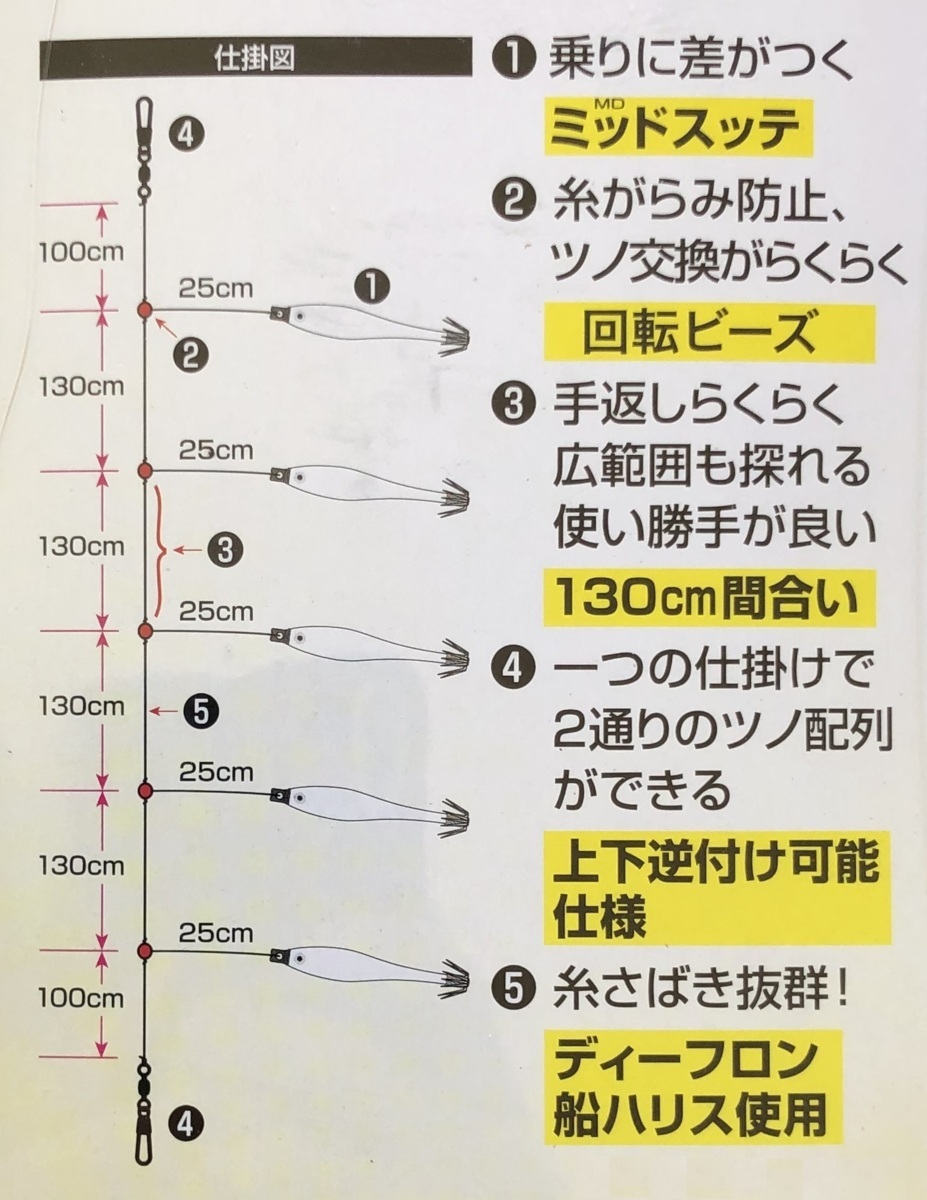 糸さばき抜群!ディーフロン船ハリス(フロロカーボン)使用