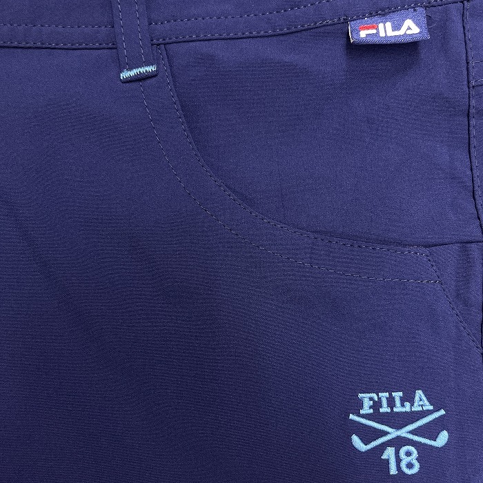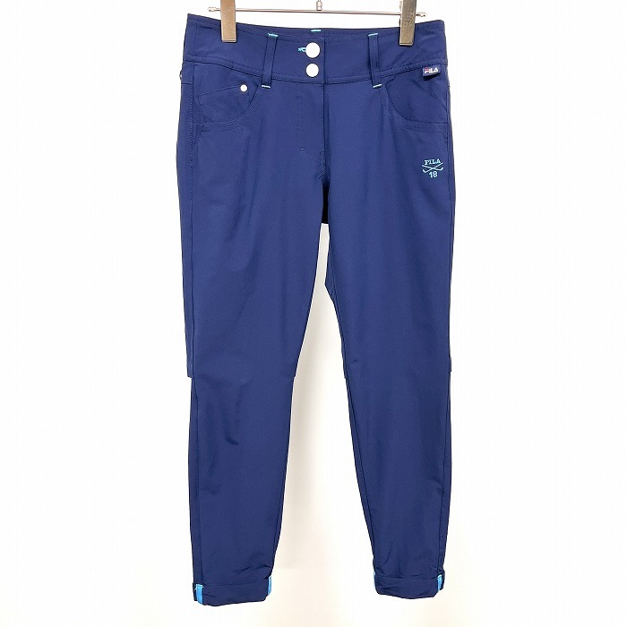| 商品タイトル | フィラゴルフ FILA GOLF テーパードパンツ 薄手 裾ダブル 膝裏にベンチレーションスリット ポリエステル×ポリウレタン M 青 レディース |