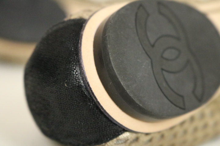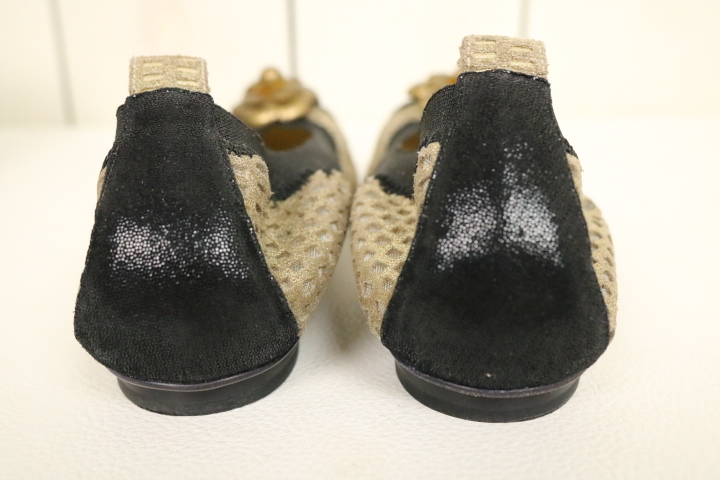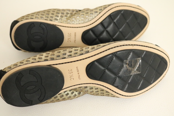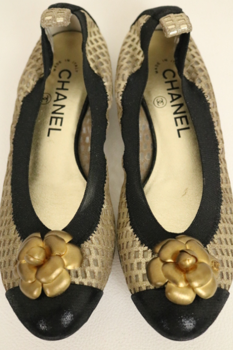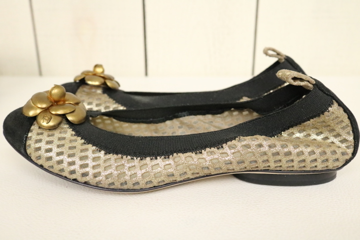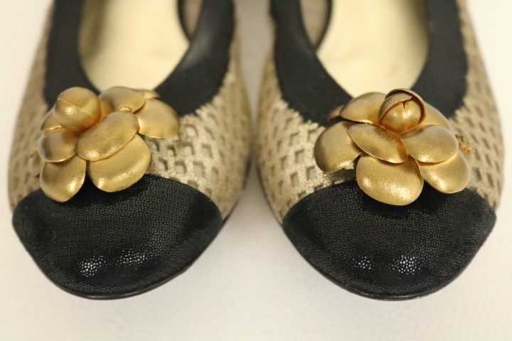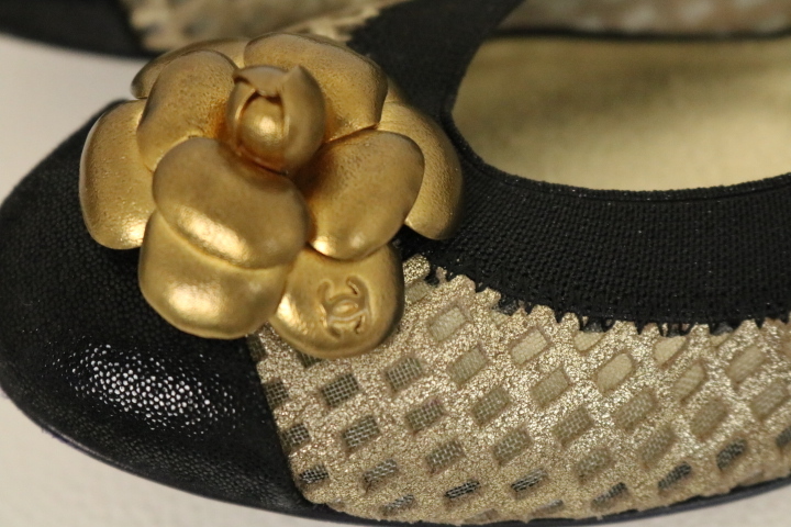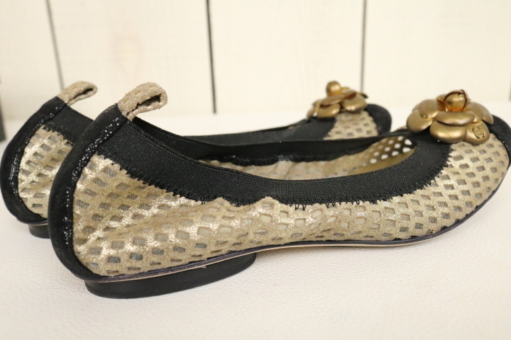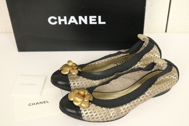 国内正規店購入【未使用】☆CHANEL シャネル:フラット シューズ 35.5 (22.5~23.0cm) ゴールド/ブラック/バレエシューズ
