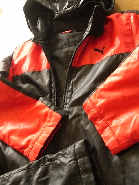 キッズ プーマ スポーツ かっこいいブルゾン コート ブラック系&レッドライン サイズ140cm