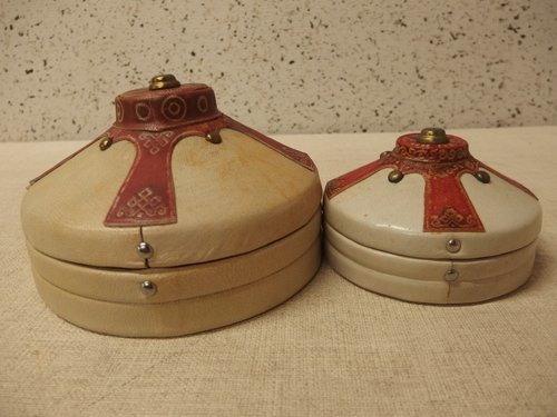 ☆★☆---☆★☆---☆★☆---☆★☆---☆★☆---☆★☆---☆★☆---☆★☆---☆★☆---☆★☆マジックポット型 小物入れ 2点・中古品・材質の詳細は不明・内側は布張り◎サイズ 《小》:底面φ10.6×H6.8cm程(フタ部分含む) 《大》:底面φ15×H9.5cm程(フタ部分含む)●詳細は画像にてご確認ください。※汚れや変色、スレ、イタミ等がみられます。※予めご了承の上ご検討ください。以上のような状態ですが、よろしければどうぞ♪(^^)☆★☆---☆★☆---☆★☆---☆★☆---☆★☆---☆★☆---☆★☆---☆★☆---☆★☆---☆★☆