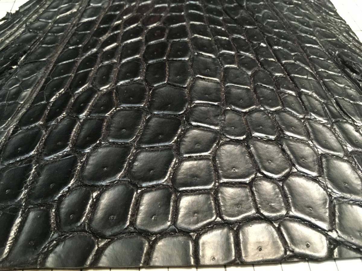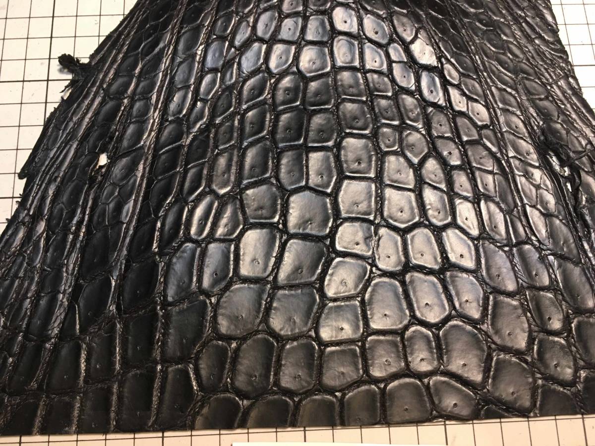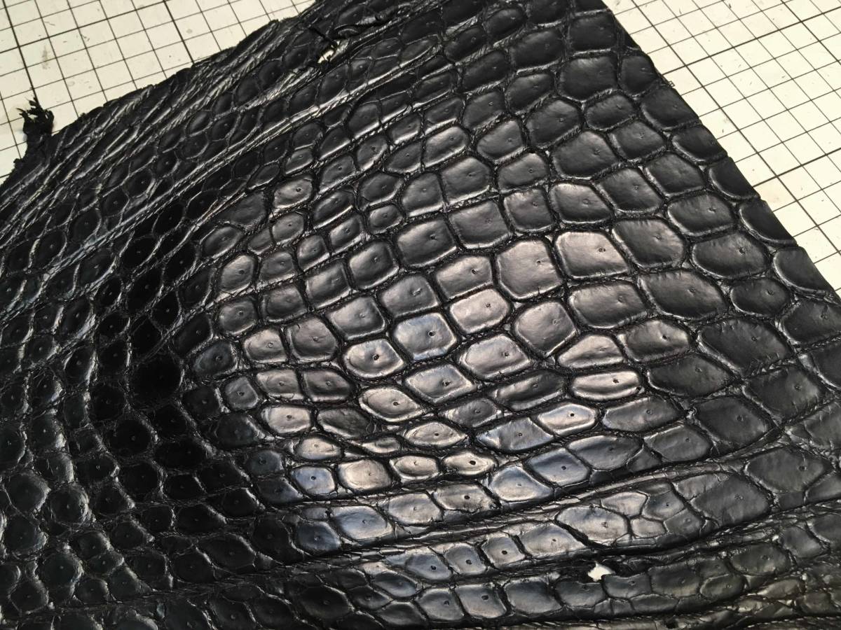 CR3-496★超希少出物一生に一度珍革好きに★超巨大腹120cmマットブラック最高級ポロサスクロコダイル★レザークラフトはぎれハギレ