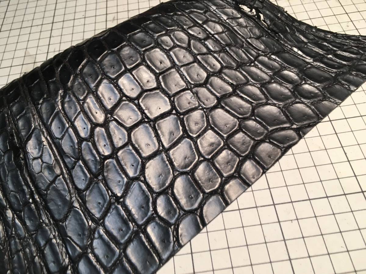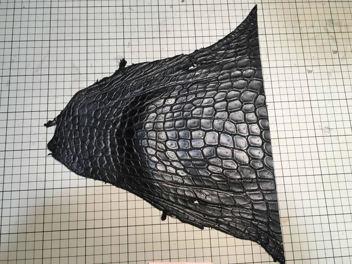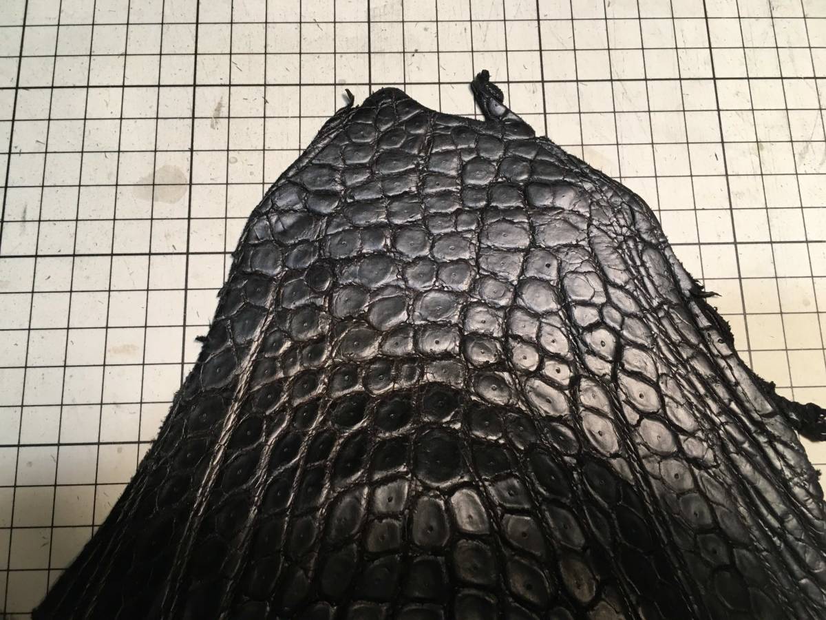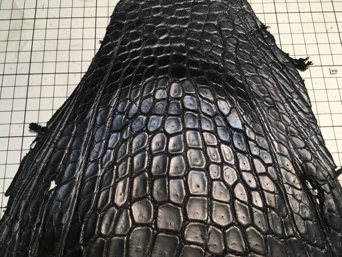 CR3-496★超希少出物一生に一度珍革好きに★超巨大腹120cmマットブラック最高級ポロサスクロコダイル★レザークラフトはぎれハギレ