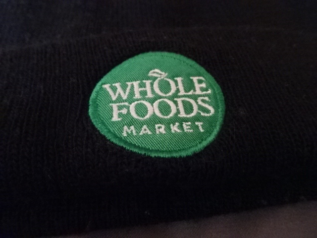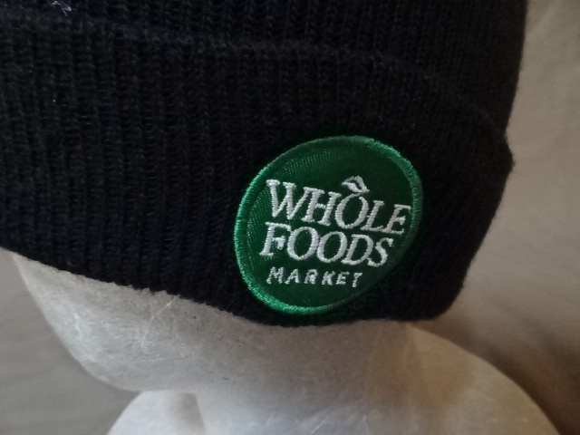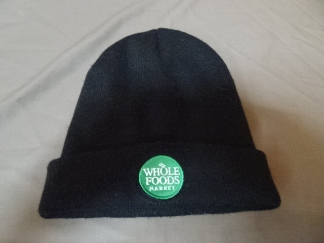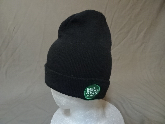 激レア USA購入 アメリカ企業モノ 高級スーパー ホールフーズ マーケット【Whole Foods Market】ロゴ刺繍ワッペン付ニットキャップ中古良品