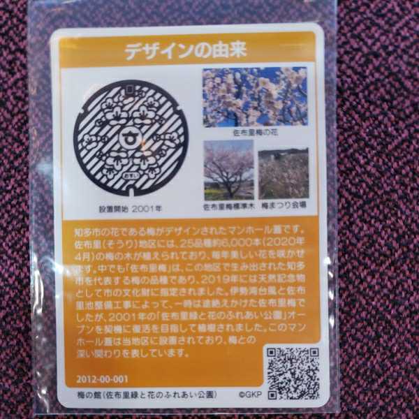 ♪商品説明♪ | マンホールカード 初期ロット 001 愛知県 知多市 梅の花 1枚 ☆厚紙補強にて送付いたします。 |