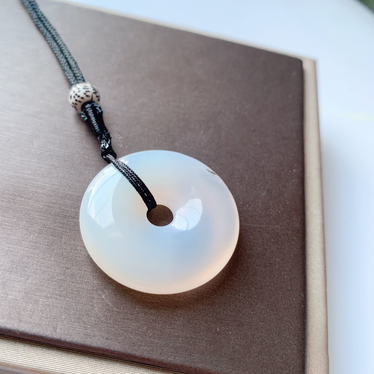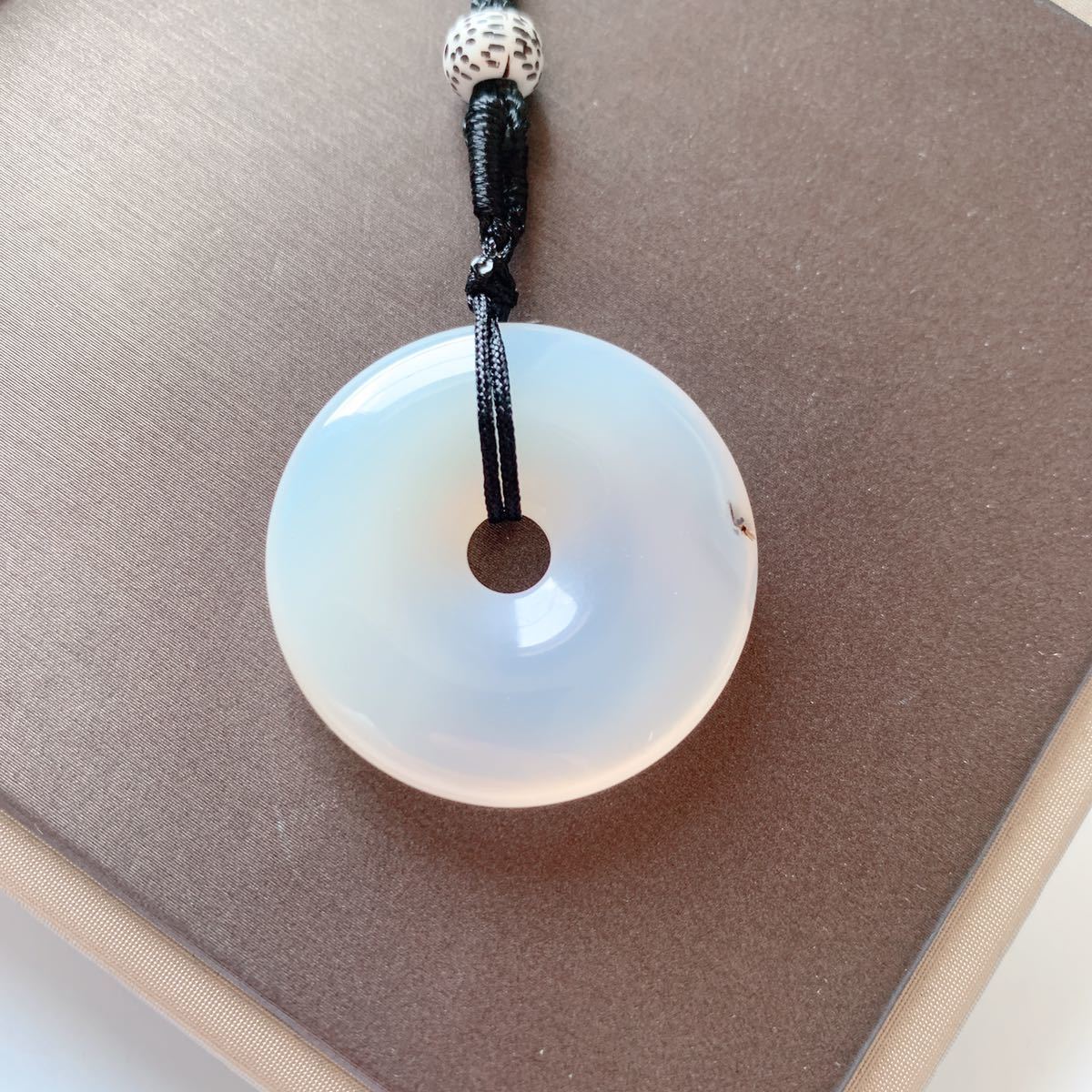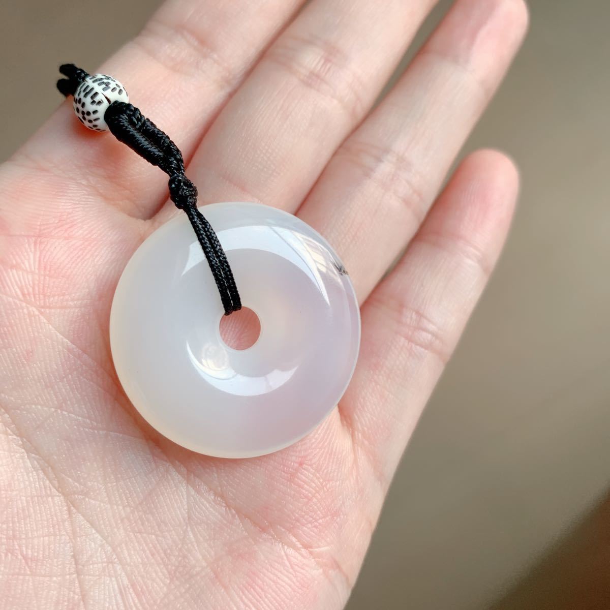 ◇白瑪瑙・メノウ◇ネックレス◇ペンダント◇ドーナツ型◇平安扣◇お守り◇天然石◇パワーストーン◇巾着袋付き◇プレゼントにも010P891