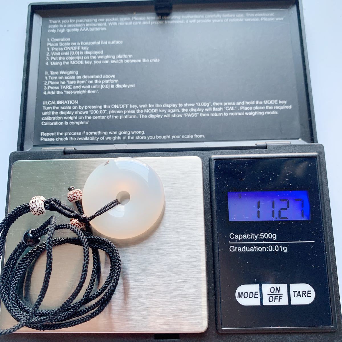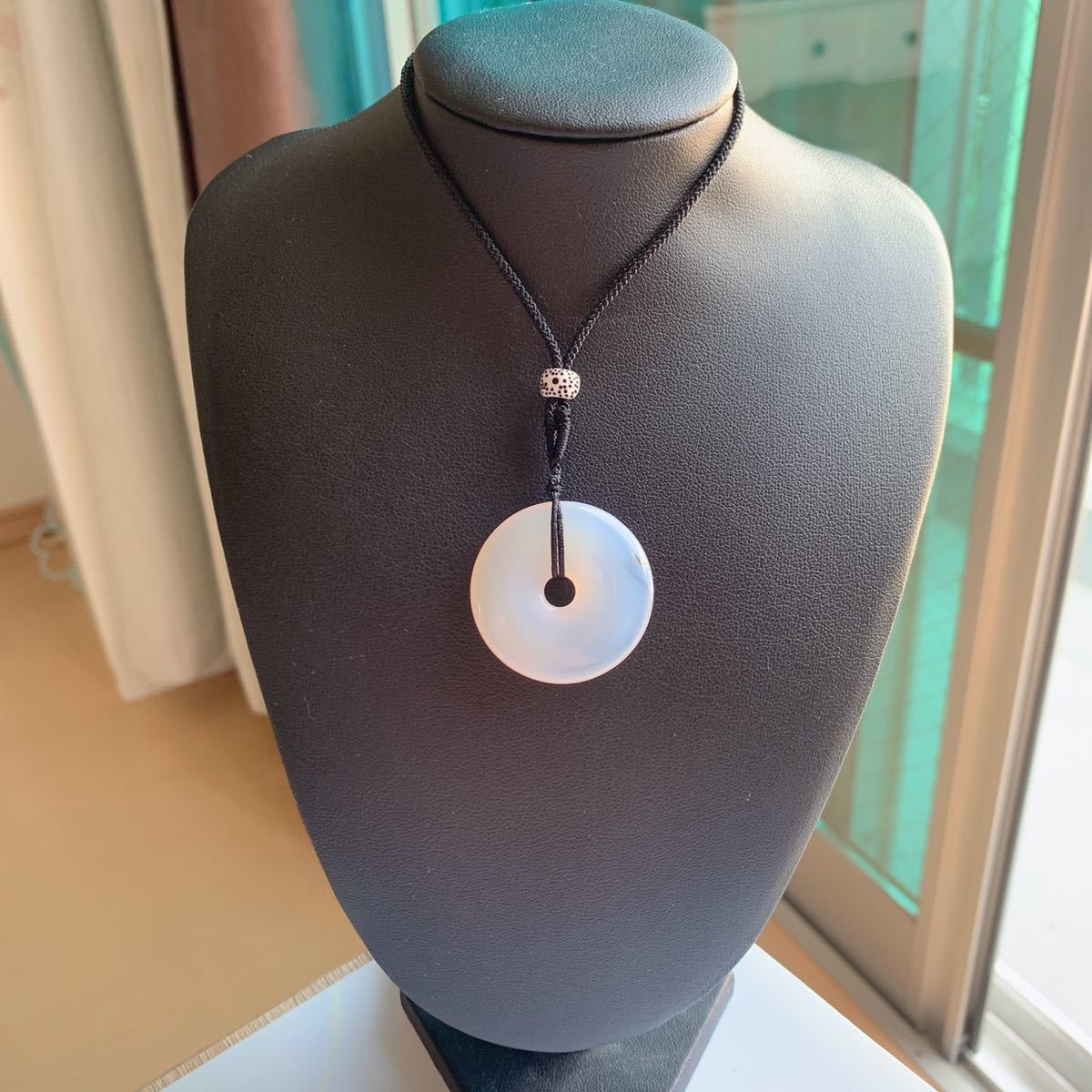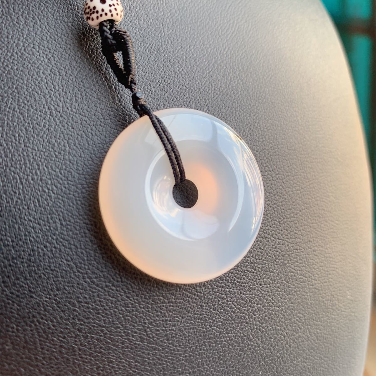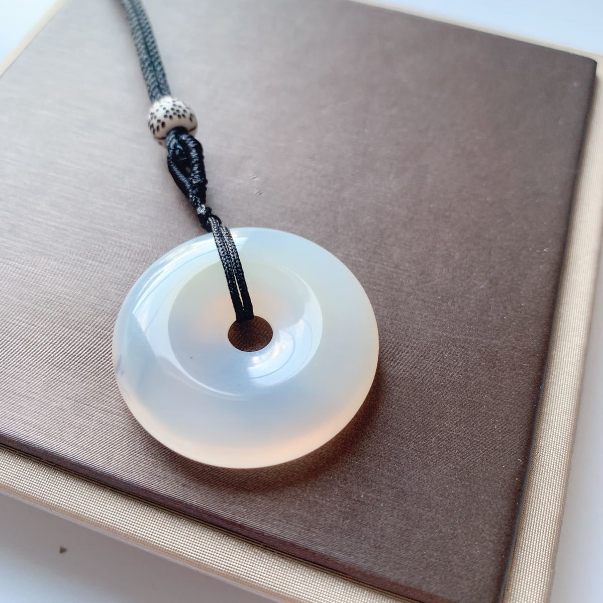 ◇白瑪瑙・メノウ◇ネックレス◇ペンダント◇ドーナツ型◇平安扣◇お守り◇天然石◇パワーストーン◇巾着袋付き◇プレゼントにも010P891
