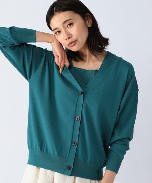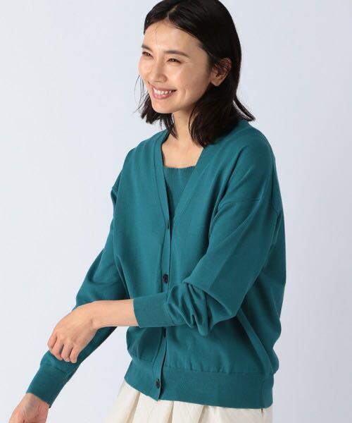 コンパクトな丈感のシンプルなVネックカーディガン。