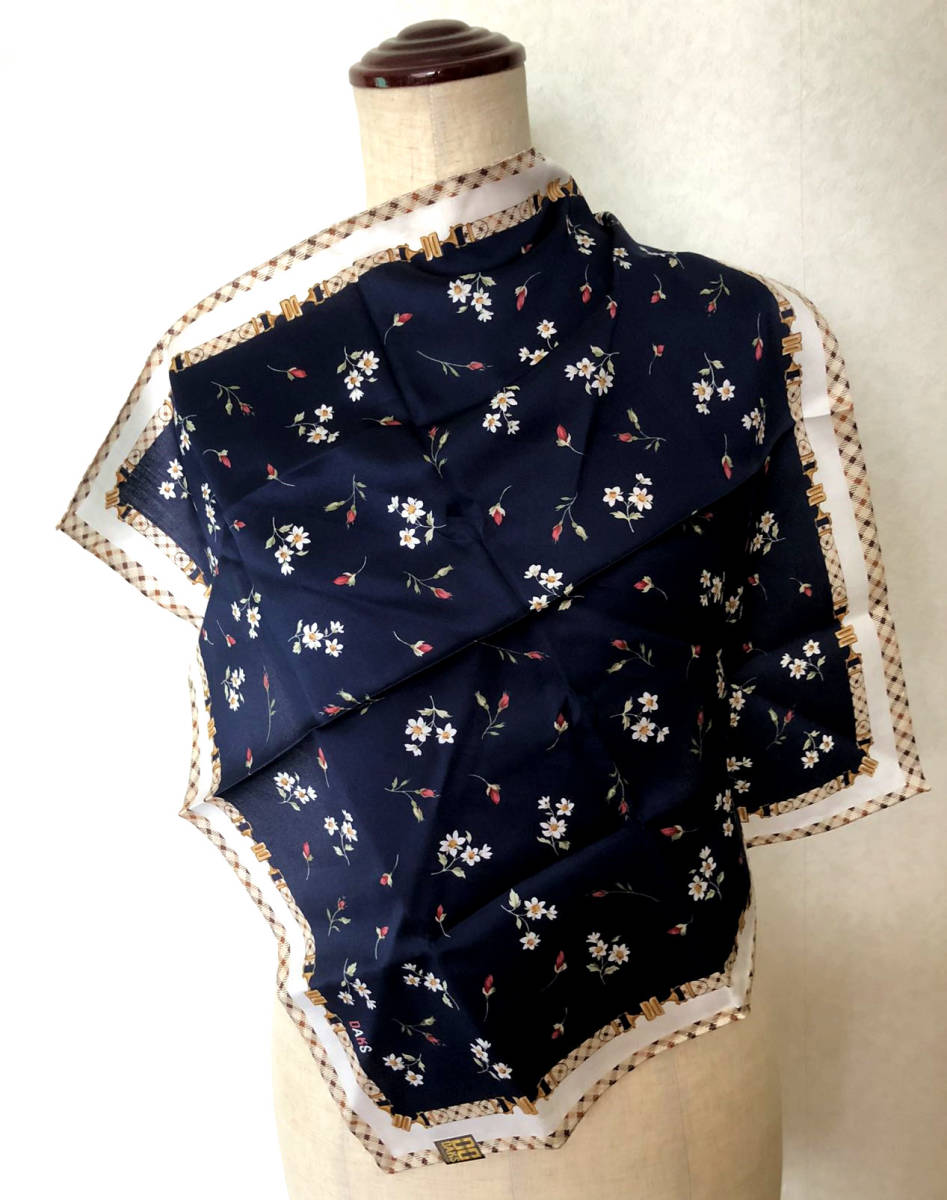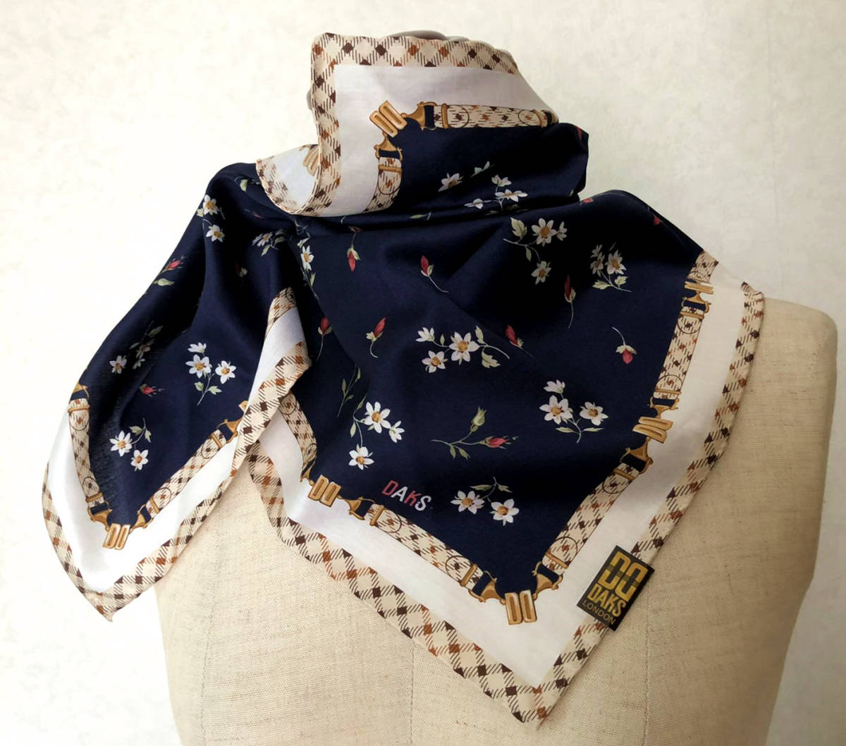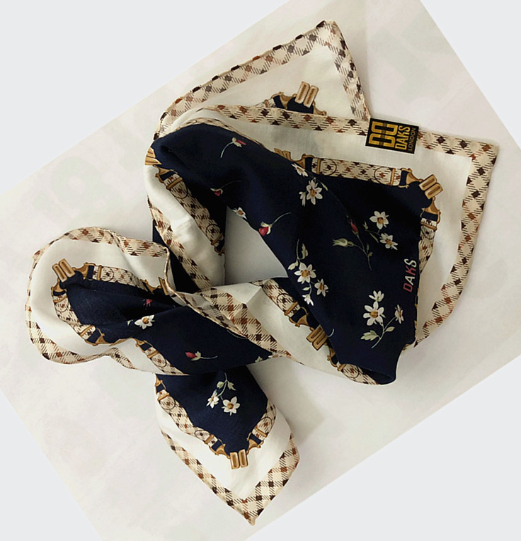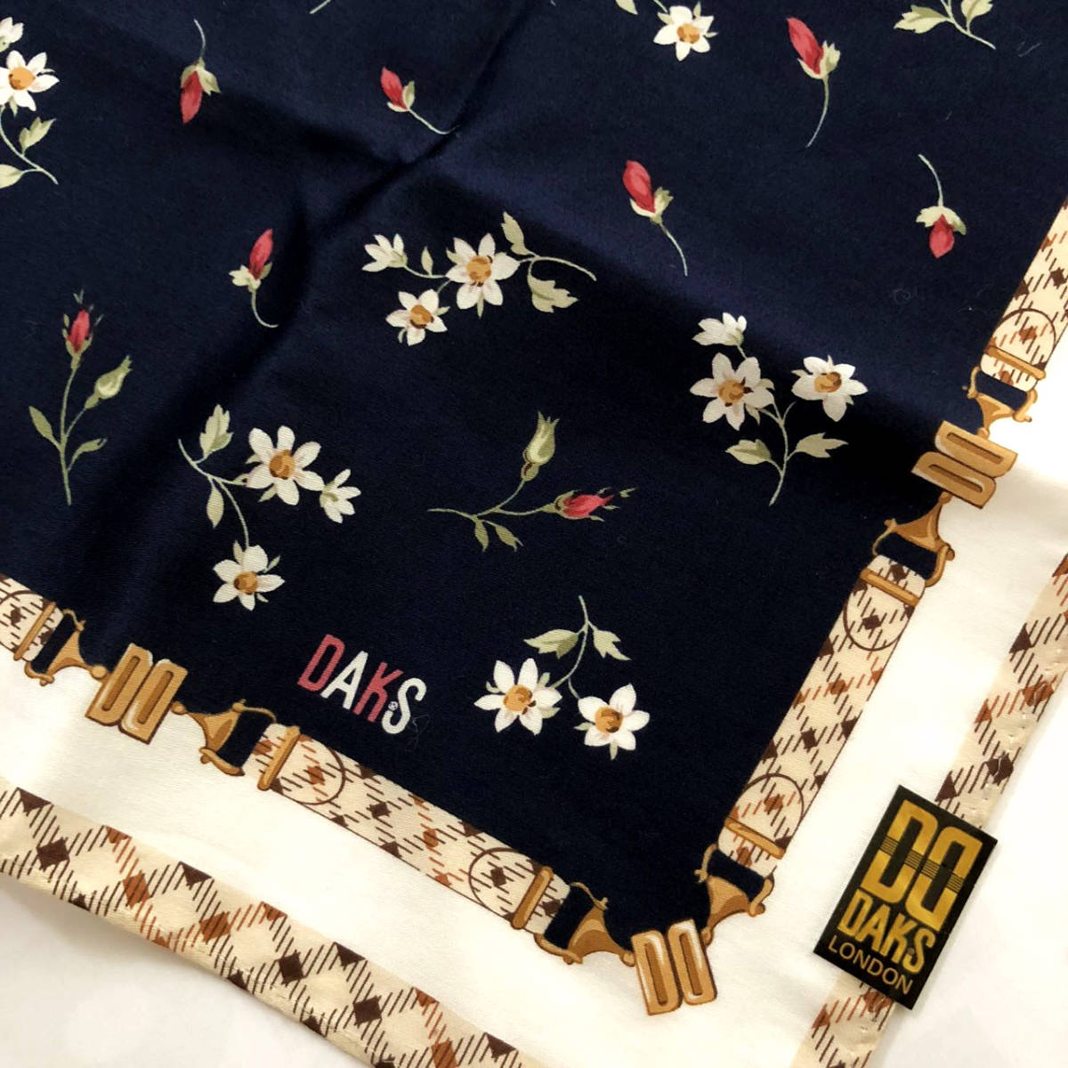 新品DAKS ダックス◆花柄&ノバチェックロゴ柄大判ハンカチミニスカーフ◆膝掛け④