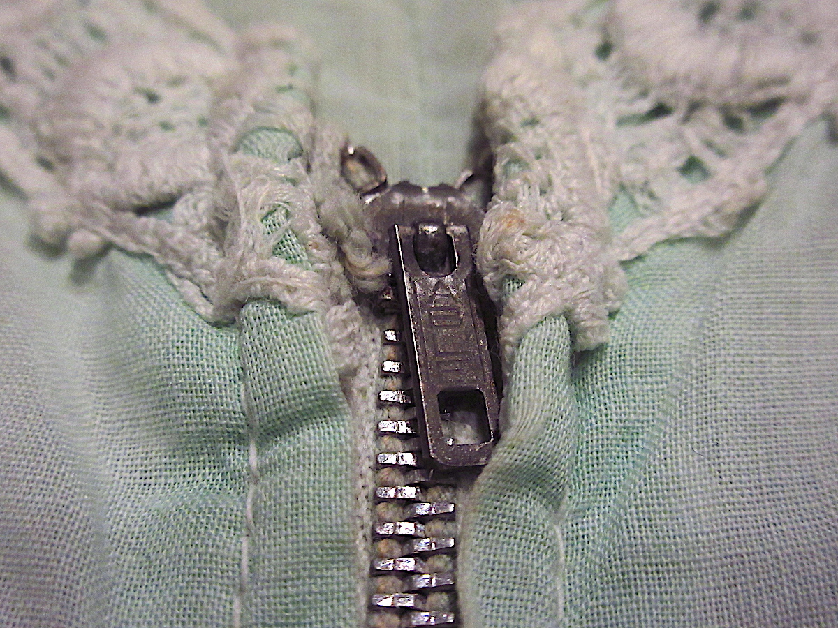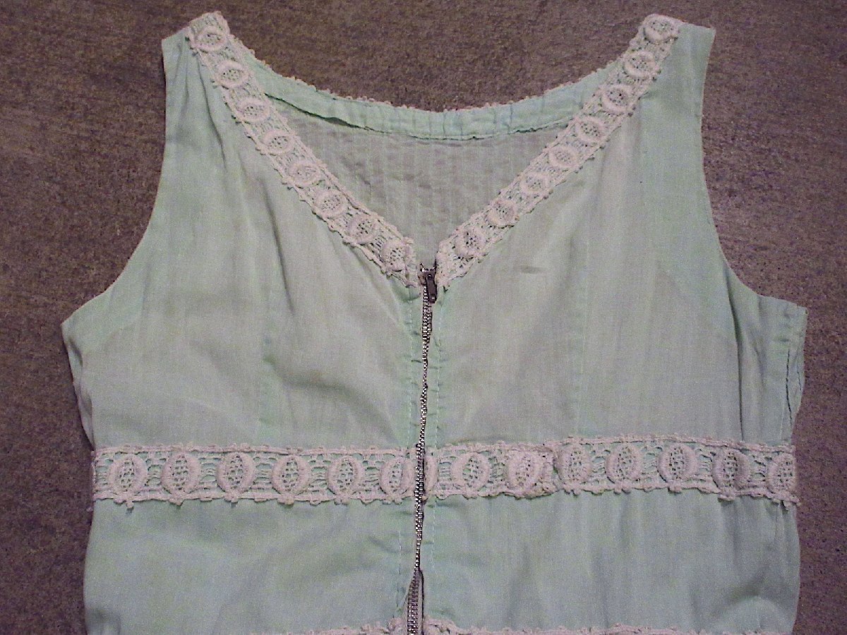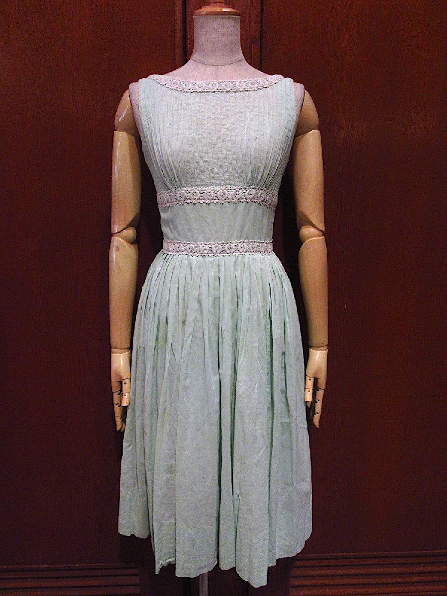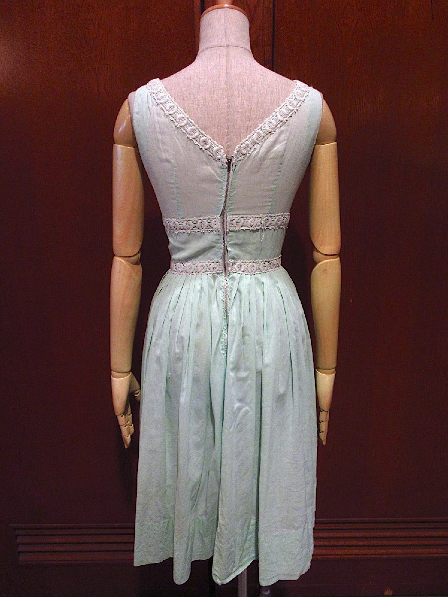 1950's~1960's レース刺繍入り ノースリーブワンピース ミントグリーン