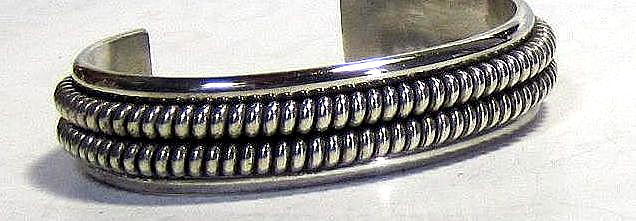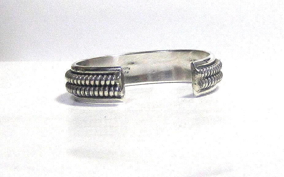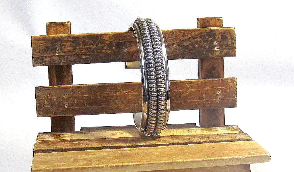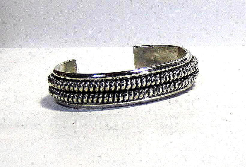 80年代の ナバホ族 『Nora Tahe』 のパワフルな バングル 女性の丁寧さと女性とは 思えない力強さを持つアーティスト ベージックでシンプルな ワイヤーワークの技が冴えた 質の高い、力強さを感じる、 豪華なバングルです。 ■商品詳細・ ナバホ族 『Nora Tahe』作 スターリングシルバー サイズ (内径150mm) 幅15.7mm, 厚6.6mm 開口部28.6mm 重量55.15g 新品/1980年代品 送料込/Made in U.S.A Vintage ハンドメイドシルバー特有のスレ 燻が御座います。 十分にご検討の上、 ご決断をお願いします。 | ||||