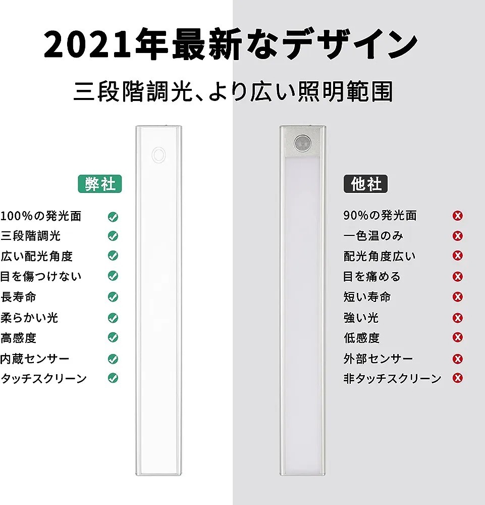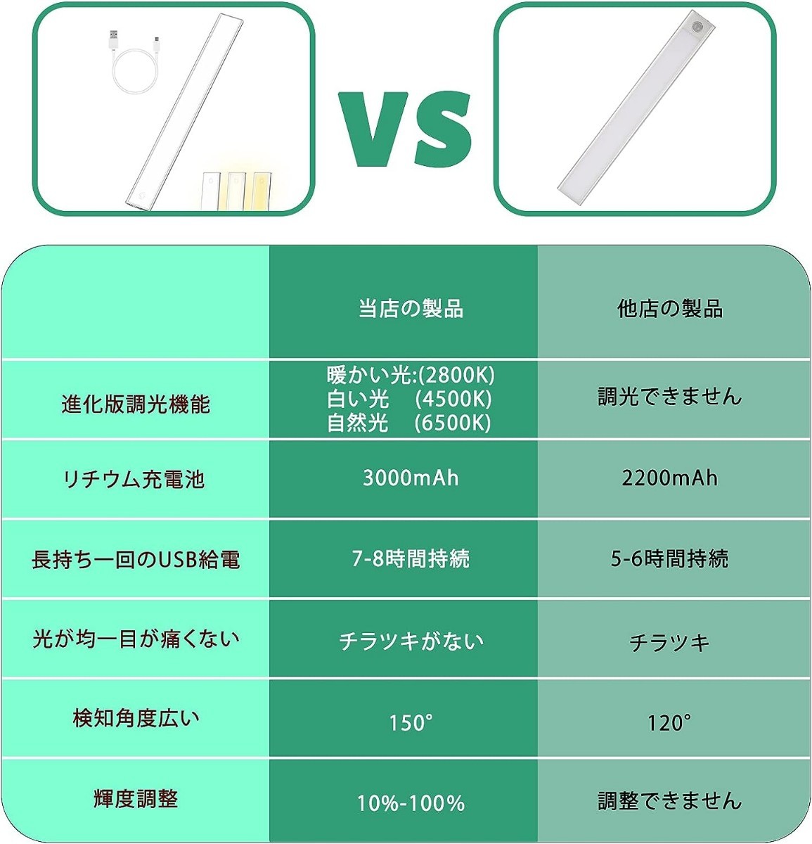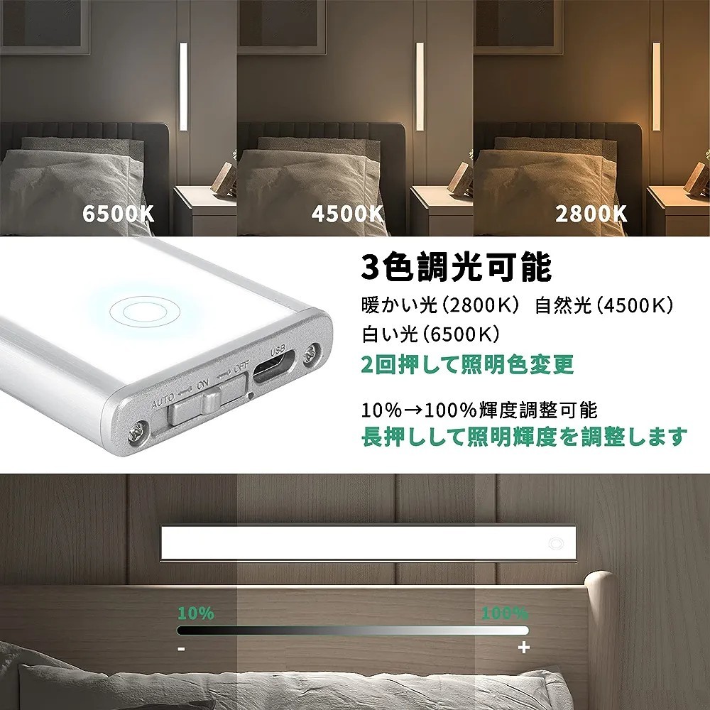 【Amazon限定ブランド】YEEZEN LEDセンサーライト 3000mAh タッチセンサー式 38cm 色温度/明るさ調整可能/内蔵センサー 人感 Led 電球色 昼白色 昼光色 超薄型設計 140LED USB 充電式センサーledバーライト 常夜灯 階段ライト 感知ライト マグネット 足元灯 夜間 省エネ 高感度 高輝度 超寿命 メモリー機能 寝室/廊下/玄関[New]