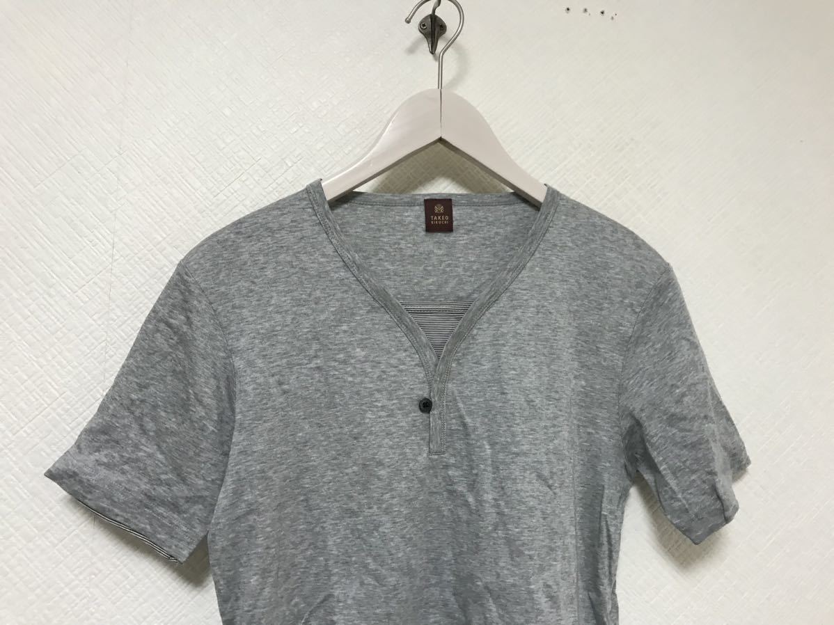 商品名:美品本物タケオキクチTAKEOKIKUCHIコットンヘンリーネックレイヤード半袖Tシャツメンズサーフアメカジミリタリービジネススーツグレー2M