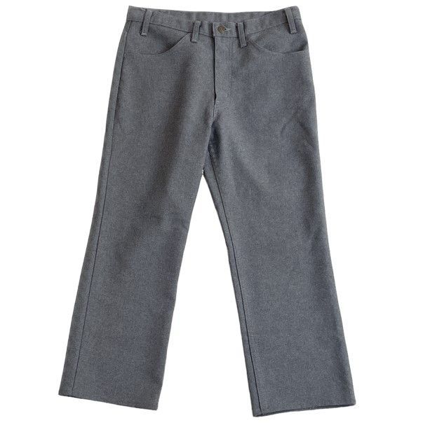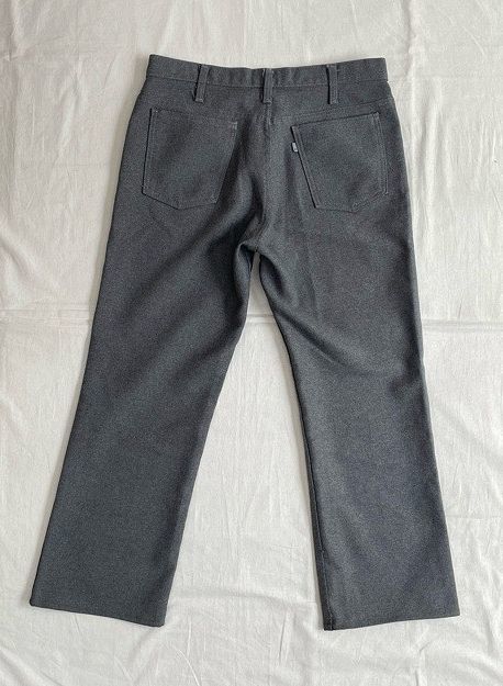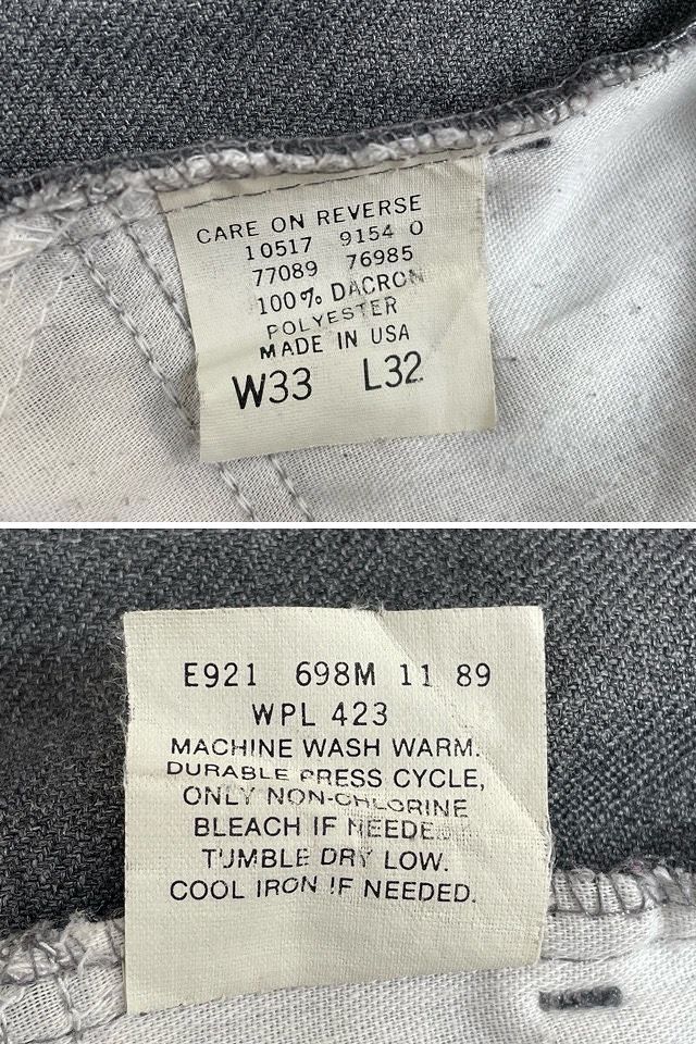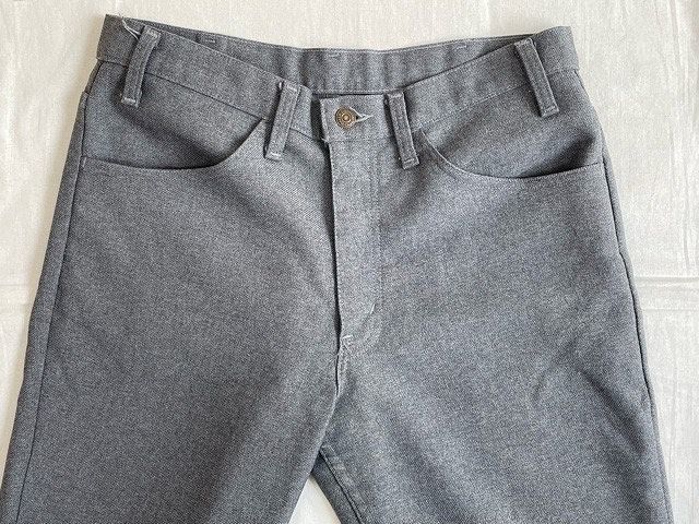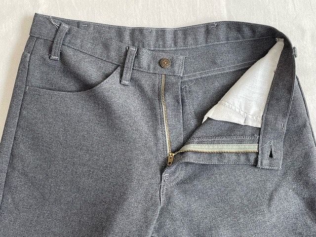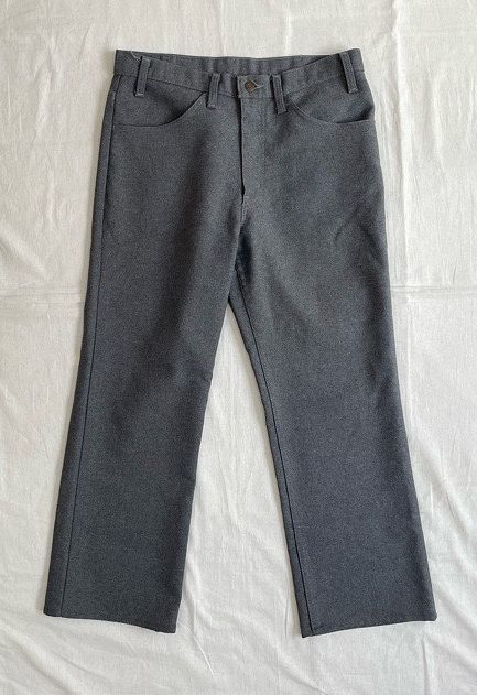 説明 | 1989年の異素材517です。 スタプレ表記はありませんがスタプレの素材感でポリエステルならではのシワの出来辛いソフトな質感です。 丈上げがしてありブーツカットのラインはほぼ無くなっています。 ボタン裏698 アメリカ製 |