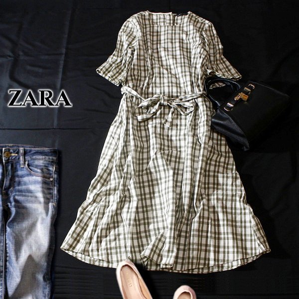 ☆☆ 美品 ザラ ウーマン ZARA WOMAN ☆☆ ゆったり可愛い 共布ベルト付き コットン マキシ丈 ワンピース XS 春 夏 23C08