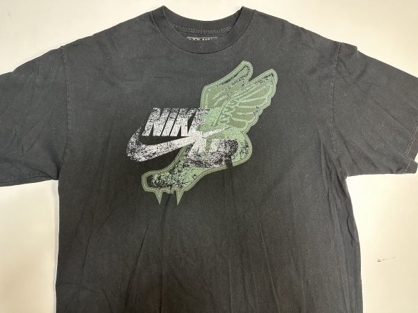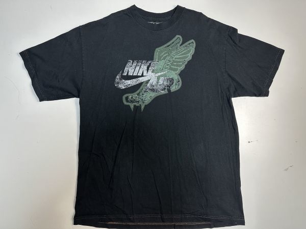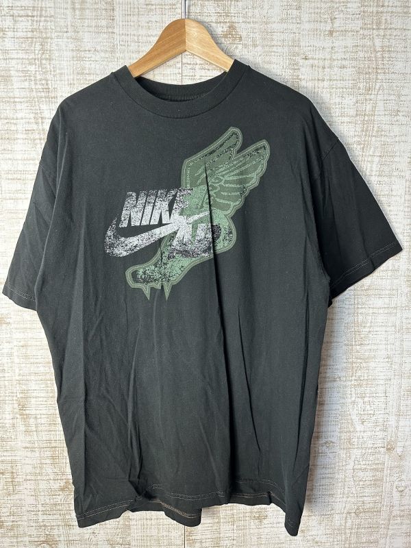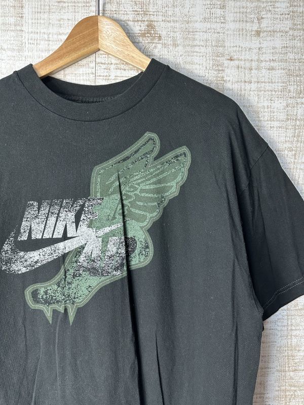 ●US USED ビッグサイズ US古着 NIKE ナイキ ウィング 羽 イラスト デザイン プリント ブラック黒【2XL/XXL】コットン