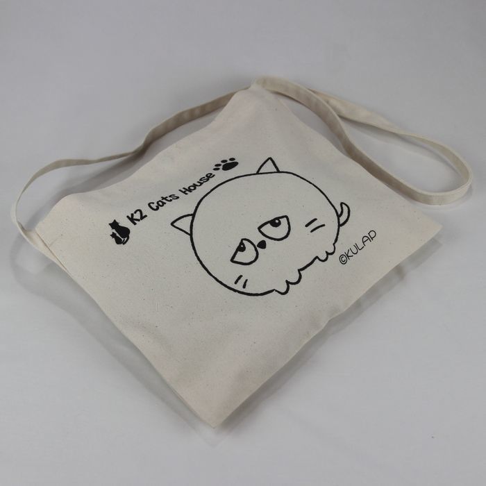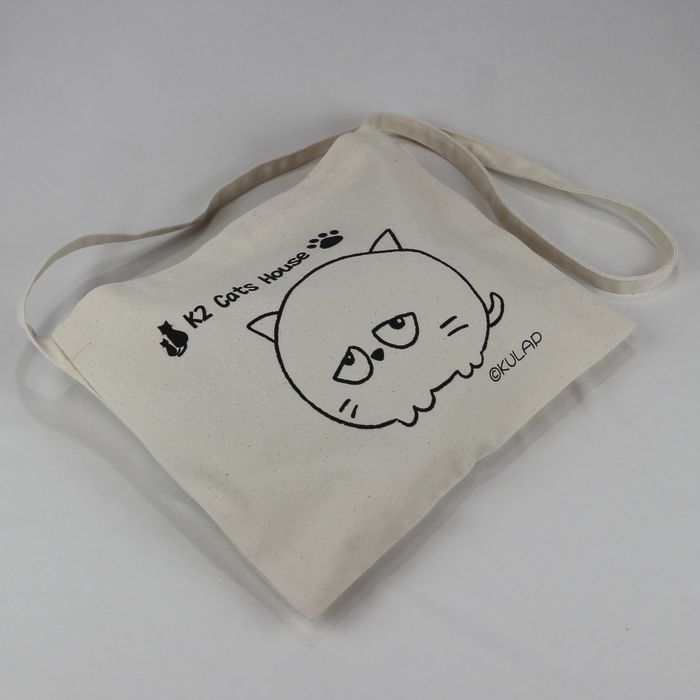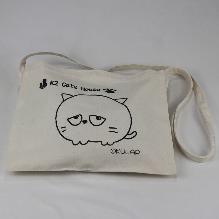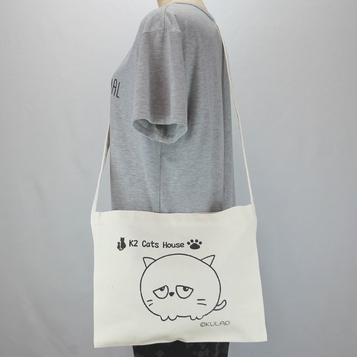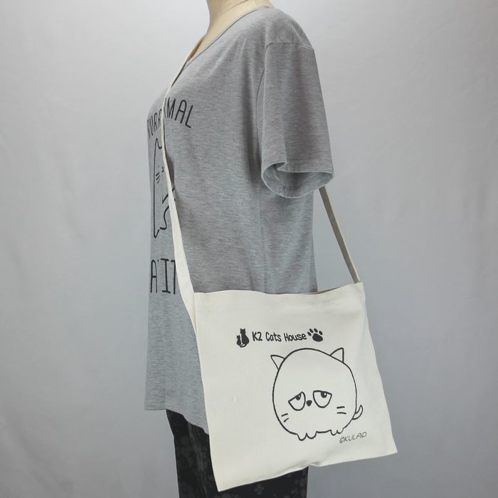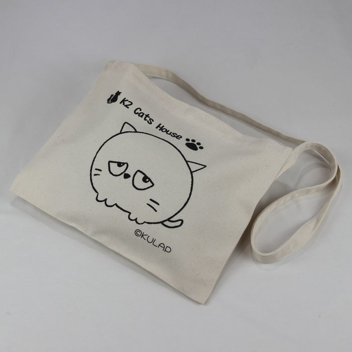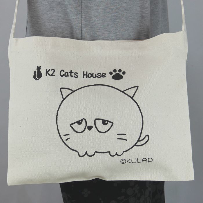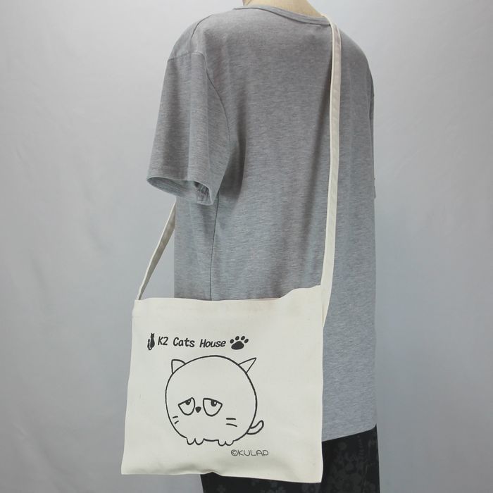 ★オリジナル猫サコッシュ Kulapデザイン キャンバス ナチュラル レディース メンズ 厚めで丈夫 普段使い はにかむ表情が何とも可愛らしい猫 klp001