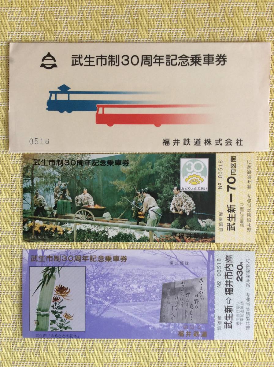 福井鉄道 武生市制30周年記念乗車券 2セット一括 昭和53年