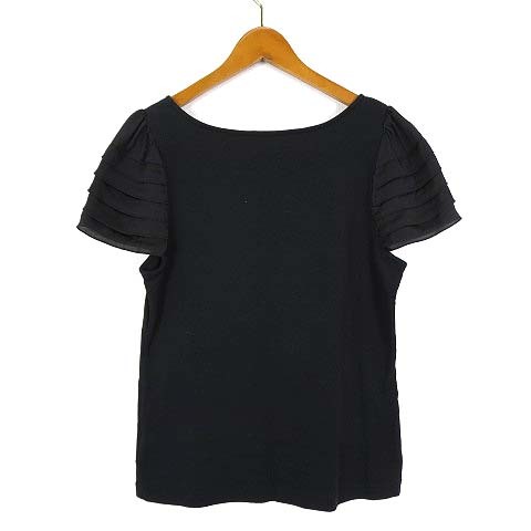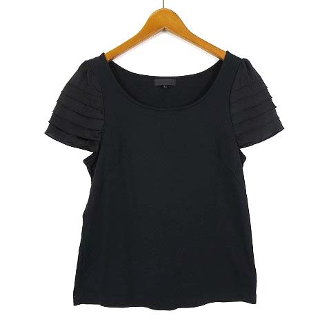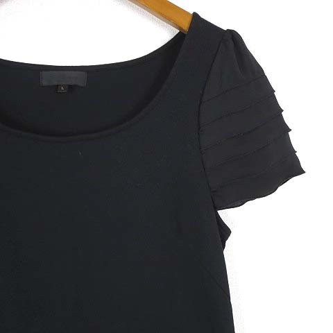 ペンナフェリーチェ Penna Felice カットソー ブラウス 異素材 切り替え ティアード フリル スリーブ 半袖 L 黒 ブラック レディース