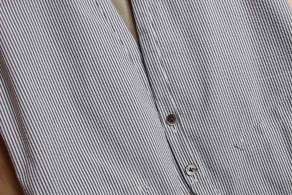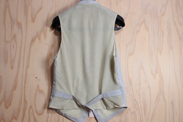 表身頃はシアサッカー素材で後ろ身頃はメッシュ素材の清涼感のある素材を使用したカジュアルなジレになります。