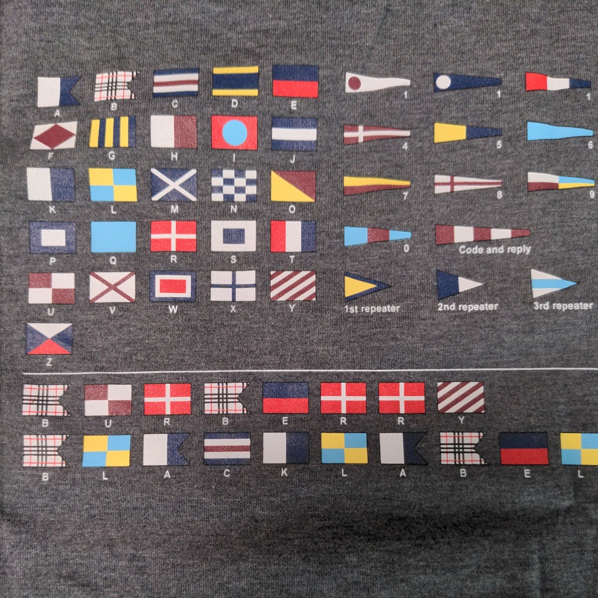 ★2015年にブランドとしての生産を終了したバーバリーブラックレーベルの薄手な半袖シャツ。グレー地にシンプルな国際船舶信号旗によるバックプリントはアピール抜群、胸元の日章旗仕様によるブラックレーベルロゴも然り気無いお洒落を演出しており、インディゴ系デニムとの相性も良く、カジュアルのトップスとしてこれからのシーズンで活躍します。