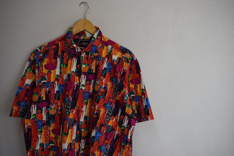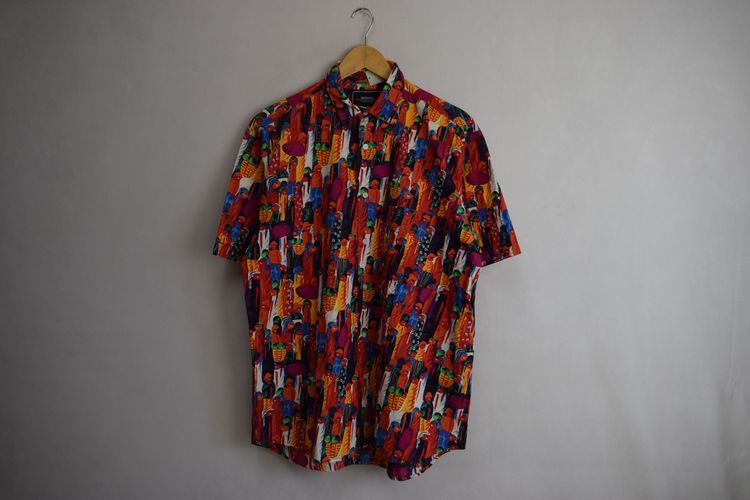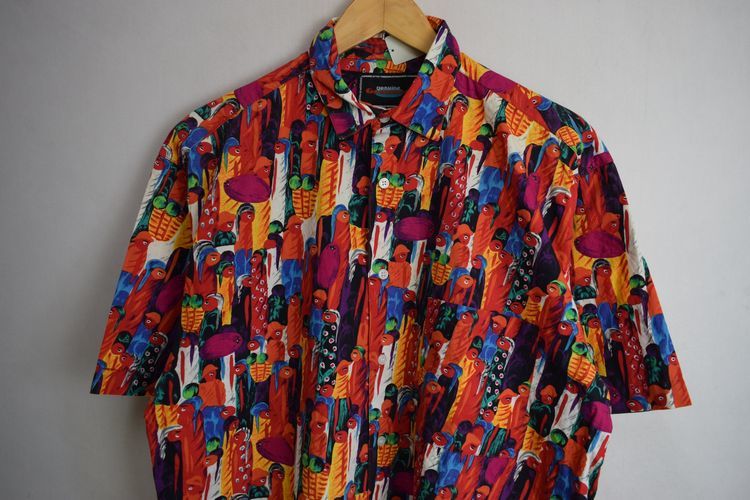 グッドカラー◎USA製gramicciグラミチオールコットン半袖総柄シャツMレッドアメカジアウトドアストリートクライミング nr23880