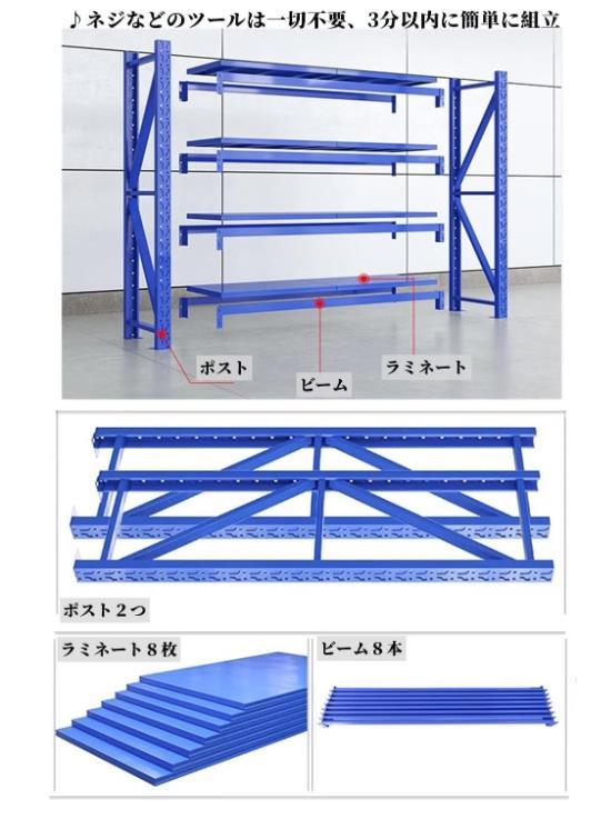 強くお勧め★ スチールラック 倉庫収納ラック 業務用メタルラック 棚 4段 耐荷重480kg 組立簡単 連結可能 高さ調節可能 作業台 U151