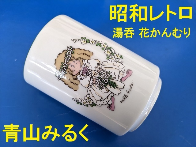 激レア★昭和レトロ★青山みるく★花かんむりの女の子★湯呑★サンリオロゴなし★検)サンリオ/いちご新聞/しおり/ファンシー雑貨/当時物