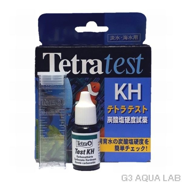 こちらの商品の最安送料による発送方法は定形外郵便となります。定形外郵便のお届けは、通常2~5日程度要します。お急ぎの方は宅配便を選択ください。定形外郵便は、追跡番号なし、破損補償なし、代引き不可、時間指定なし(ポスト投函)となります。炭酸塩硬度試薬 KHの測定試薬(淡水・海水用)テトラテストKHは、水槽水の炭酸水素イオン濃度、すなわち炭酸塩硬度の測定用に開発された試薬です。炭酸塩硬度は、水のpH値と深い関係があり、水槽水の炭酸塩硬度が低すぎると、pHレベルが急激に下がり、魚に有害となります。