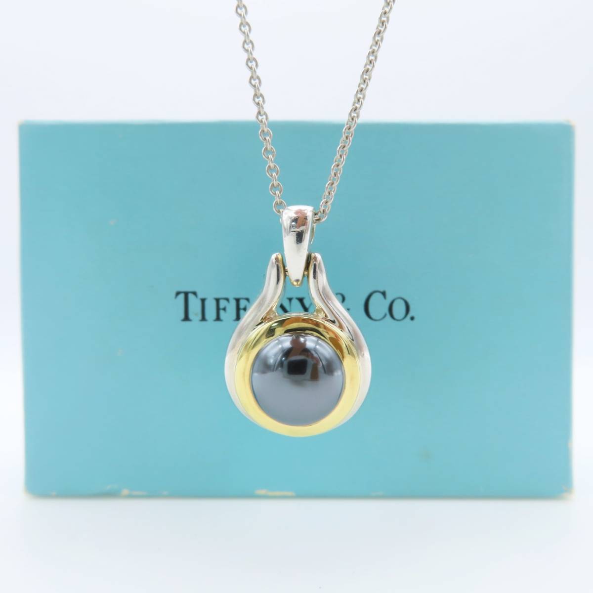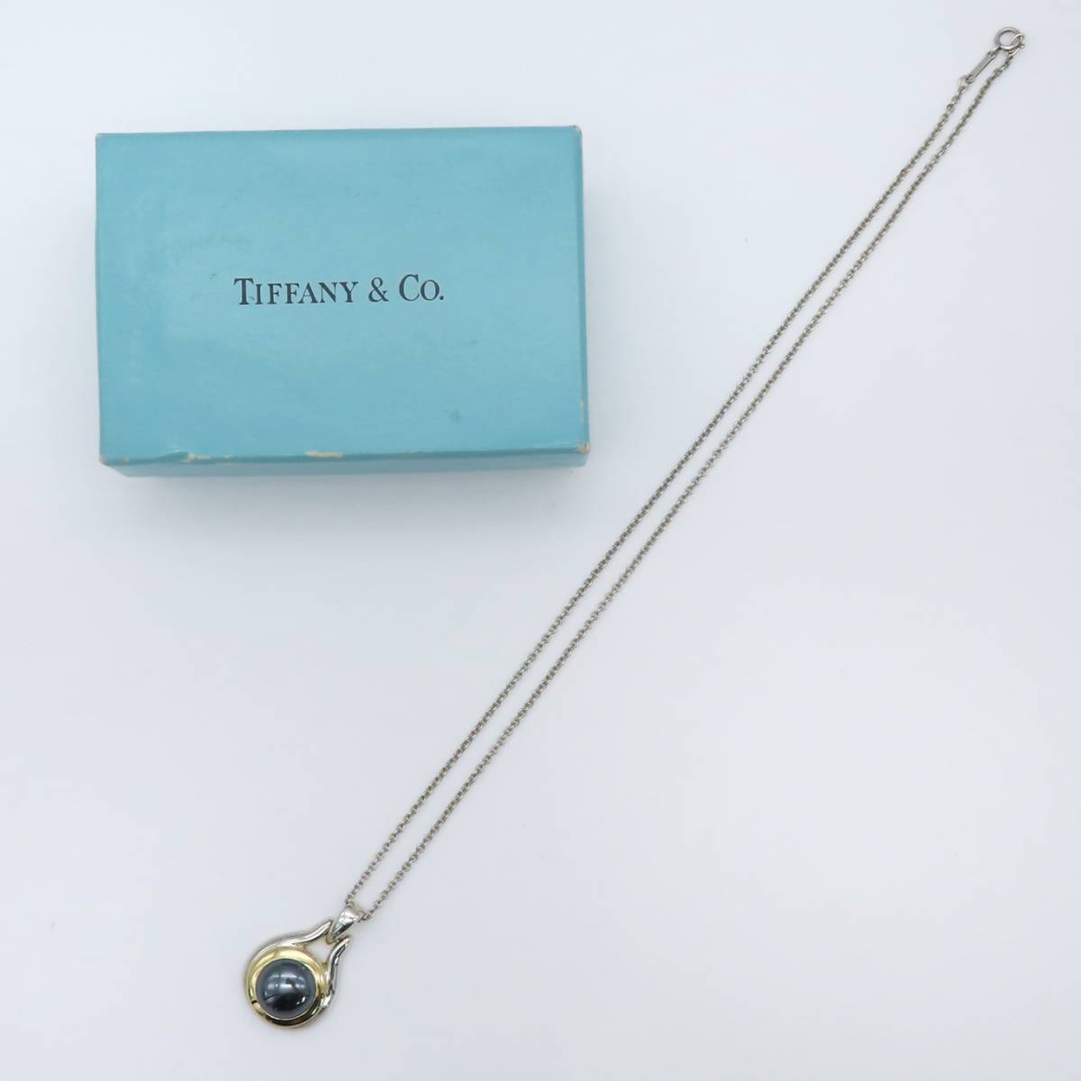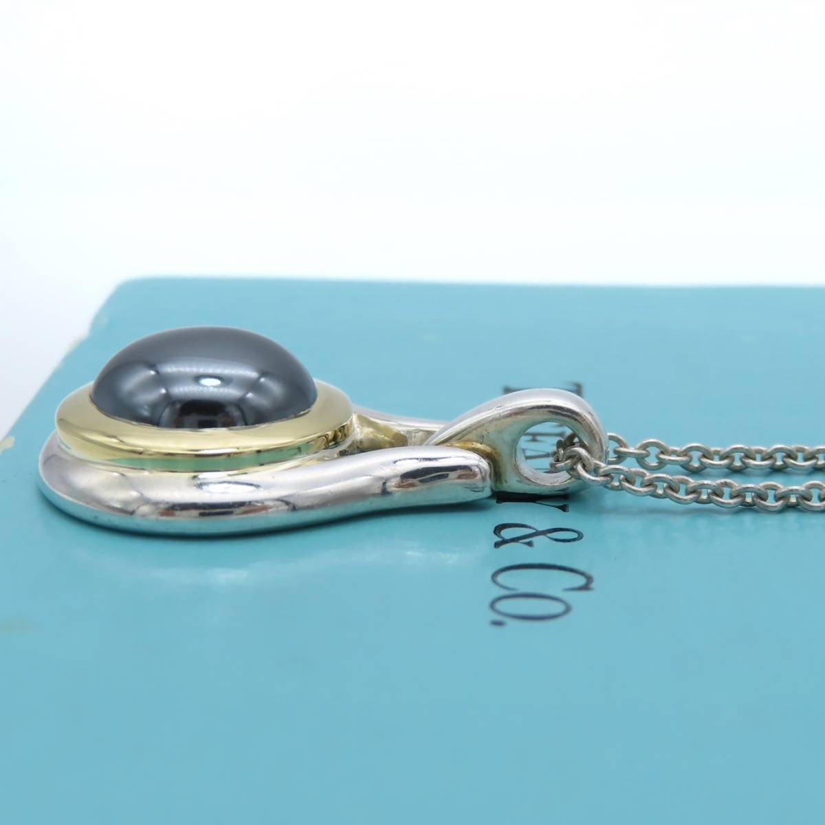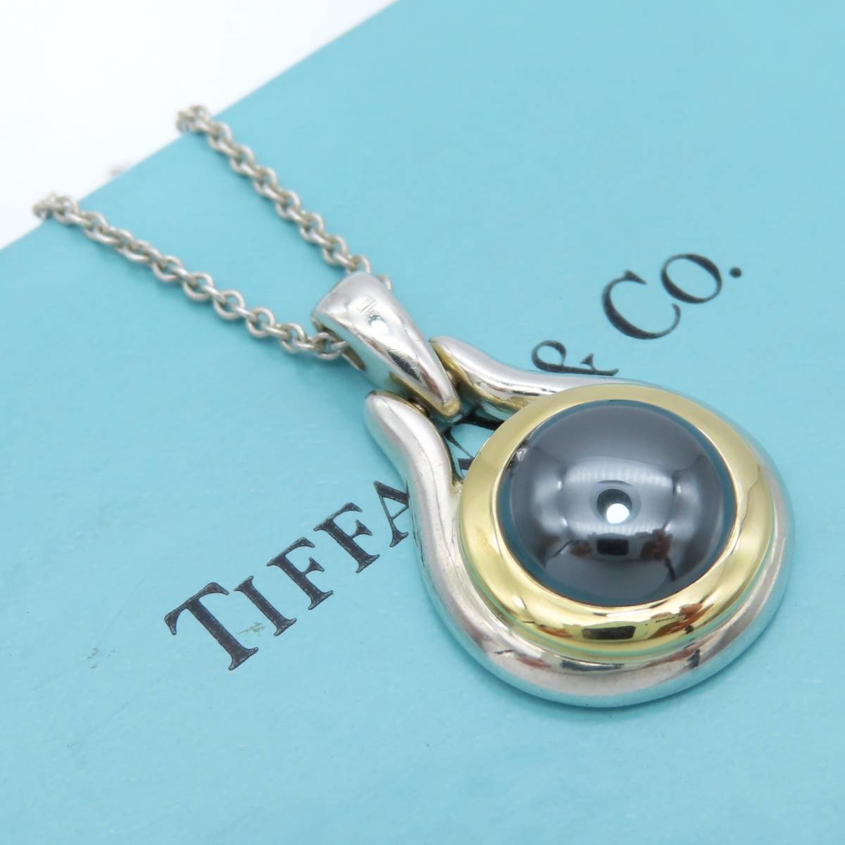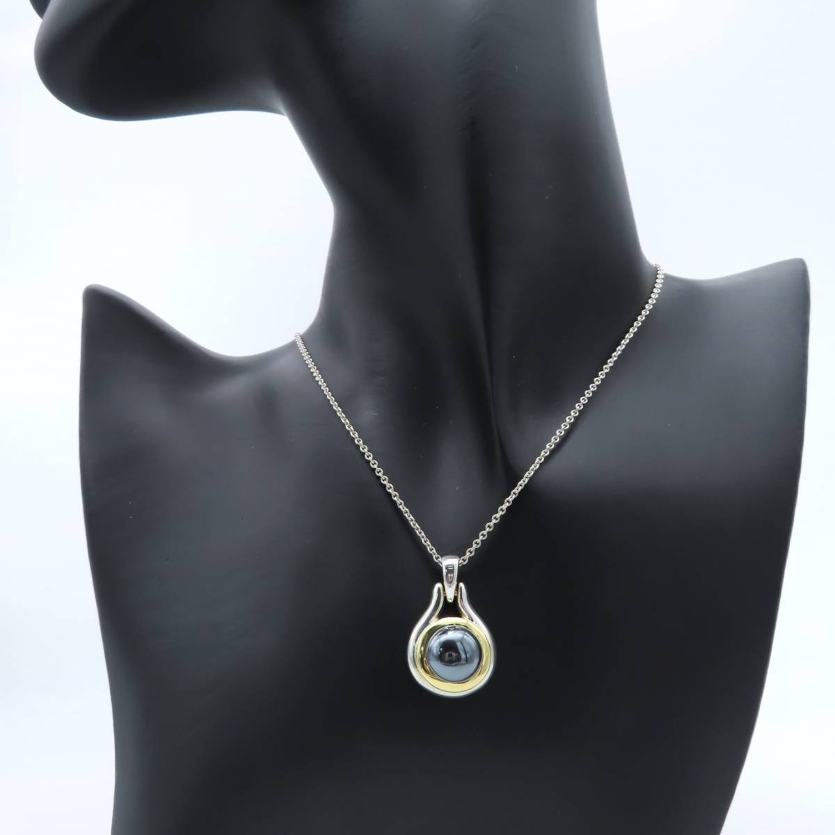 【送料無料】極希少 美品 Tiffany&Co. ヴィンテージ ティファニー ブラック ヘマタイト ゴールド シルバー ネックレス SV925 750 ET39