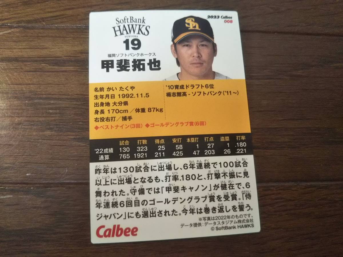 [同梱可]23★甲斐拓也(福岡ソフトバンクホークス)★レギュラーカード(008)☆2023年カルビープロ野球カード★