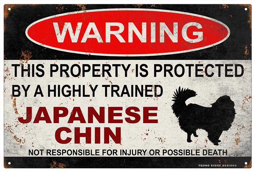 雑貨【 Japanese Chin/ジャパニーズ・チン/狆】WARNING/Dog/ドッグ/犬/警告/ヤードサイン/メタルプレート/ブリキ看板-557