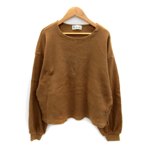 アールエヌエーエヌ RNA-N リブカットソー 長袖 ラウンドネック 無地 オーバーサイズ M 茶 ブラウン /SY30 レディース