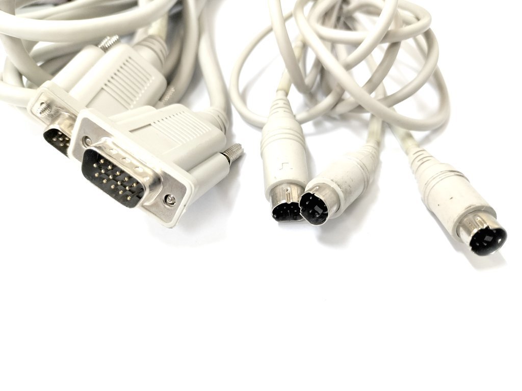 キーボードマウスのケーブルは、PS/2(キーボード)、PS/2(マウス)、MiniDIN(KVMスイッチ本体側)のコネクタが付いています。