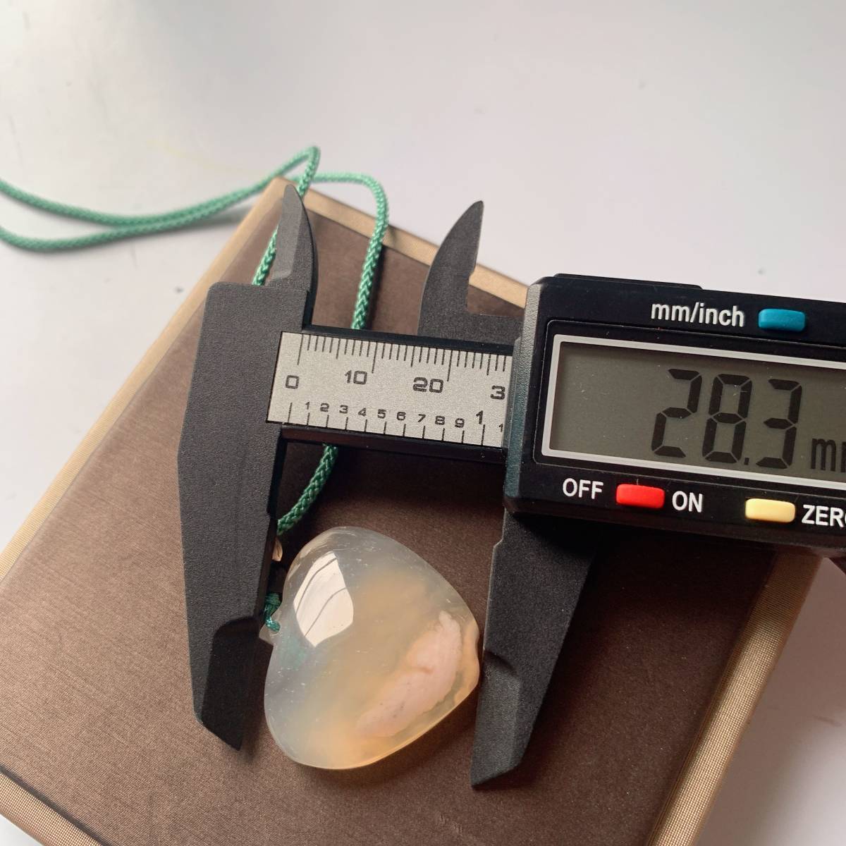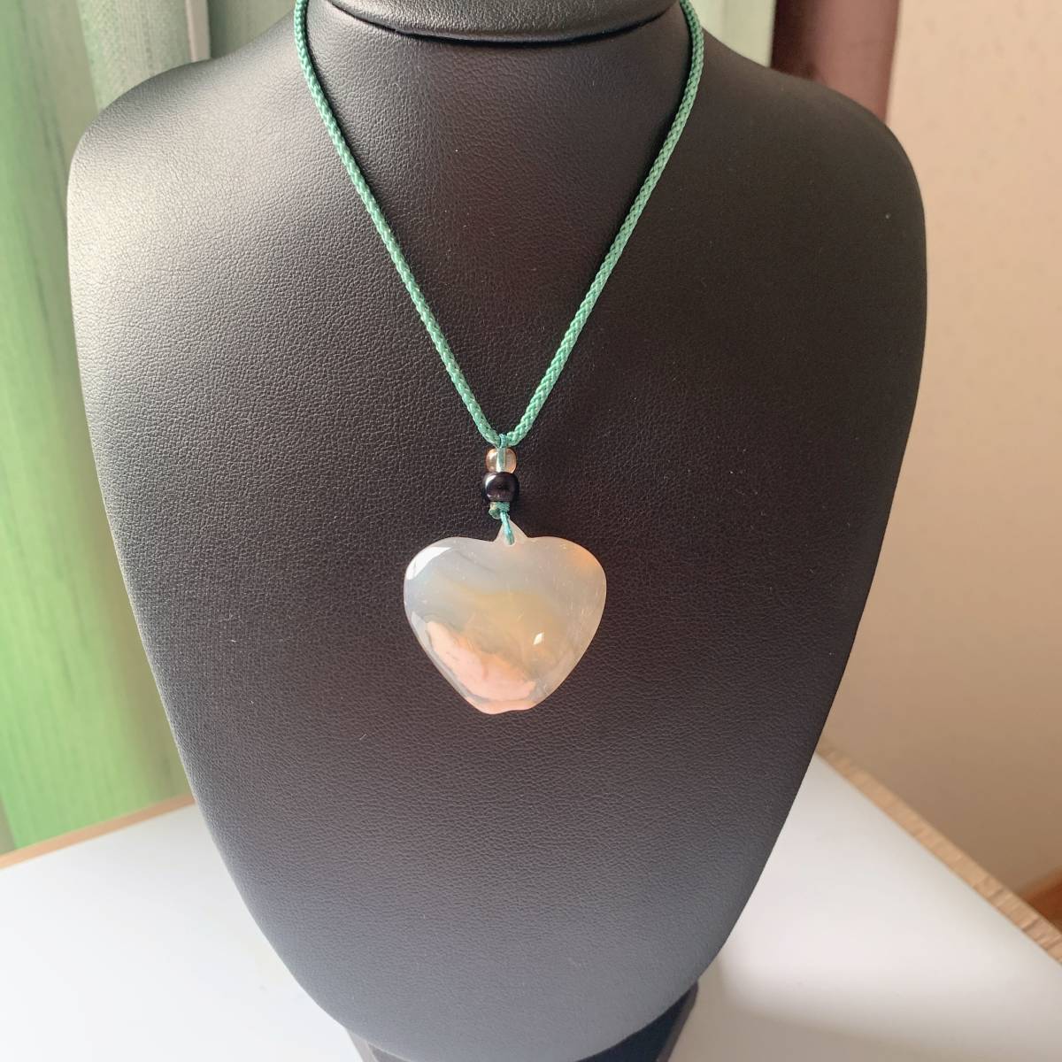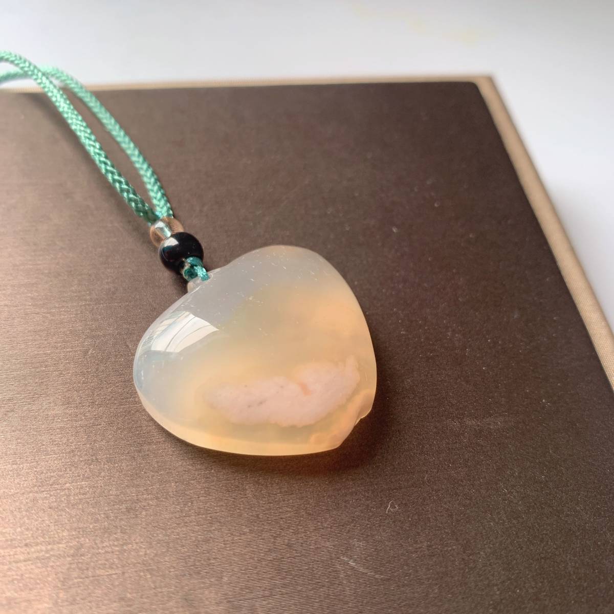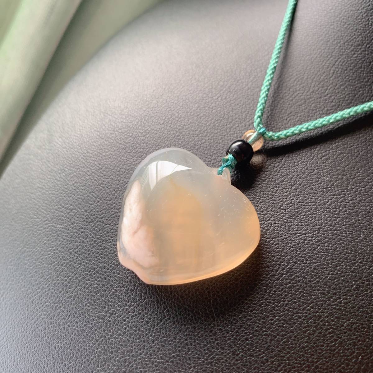 淡い透明感のあるピンクのアゲードの中にまるで桜の花が咲いてるかのように見えるパワーストーンです