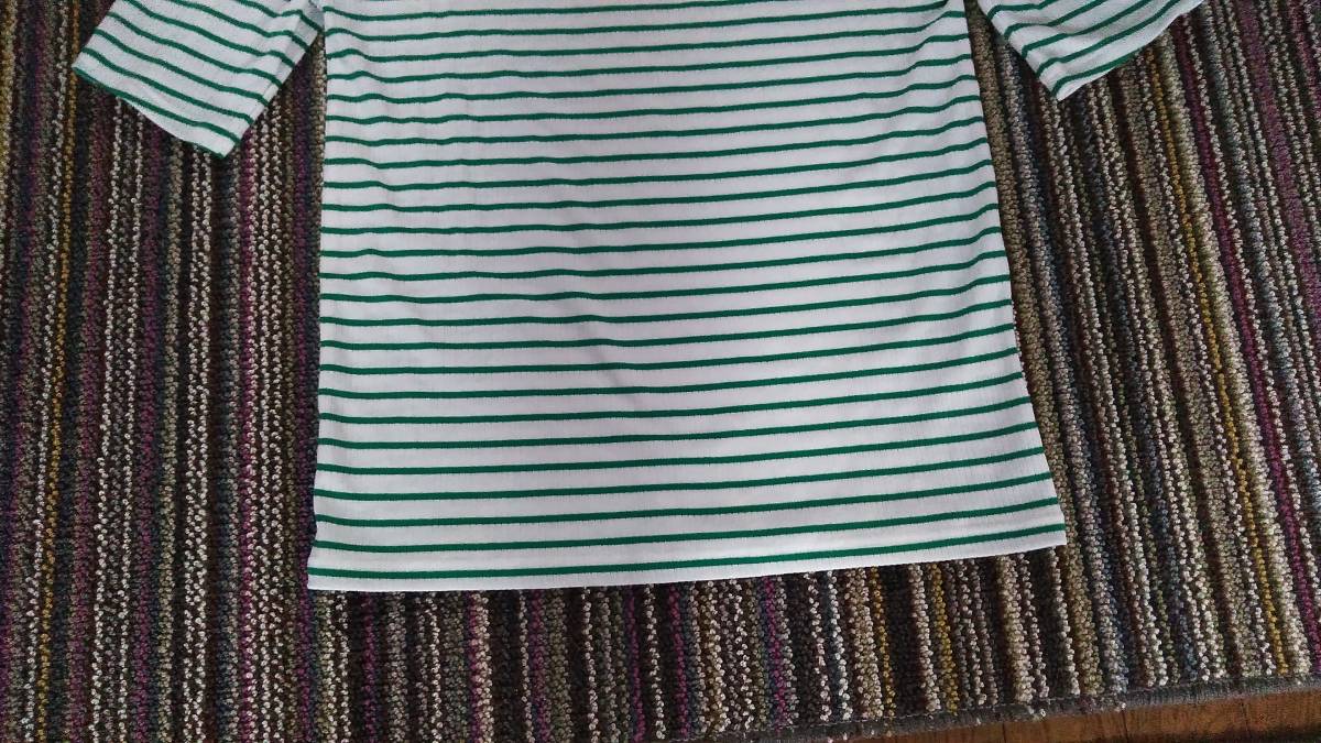 しまむら  レディース 半袖ボーダーTシャツ LL 2WAY スザンヌプロデュース アイテム 白x緑