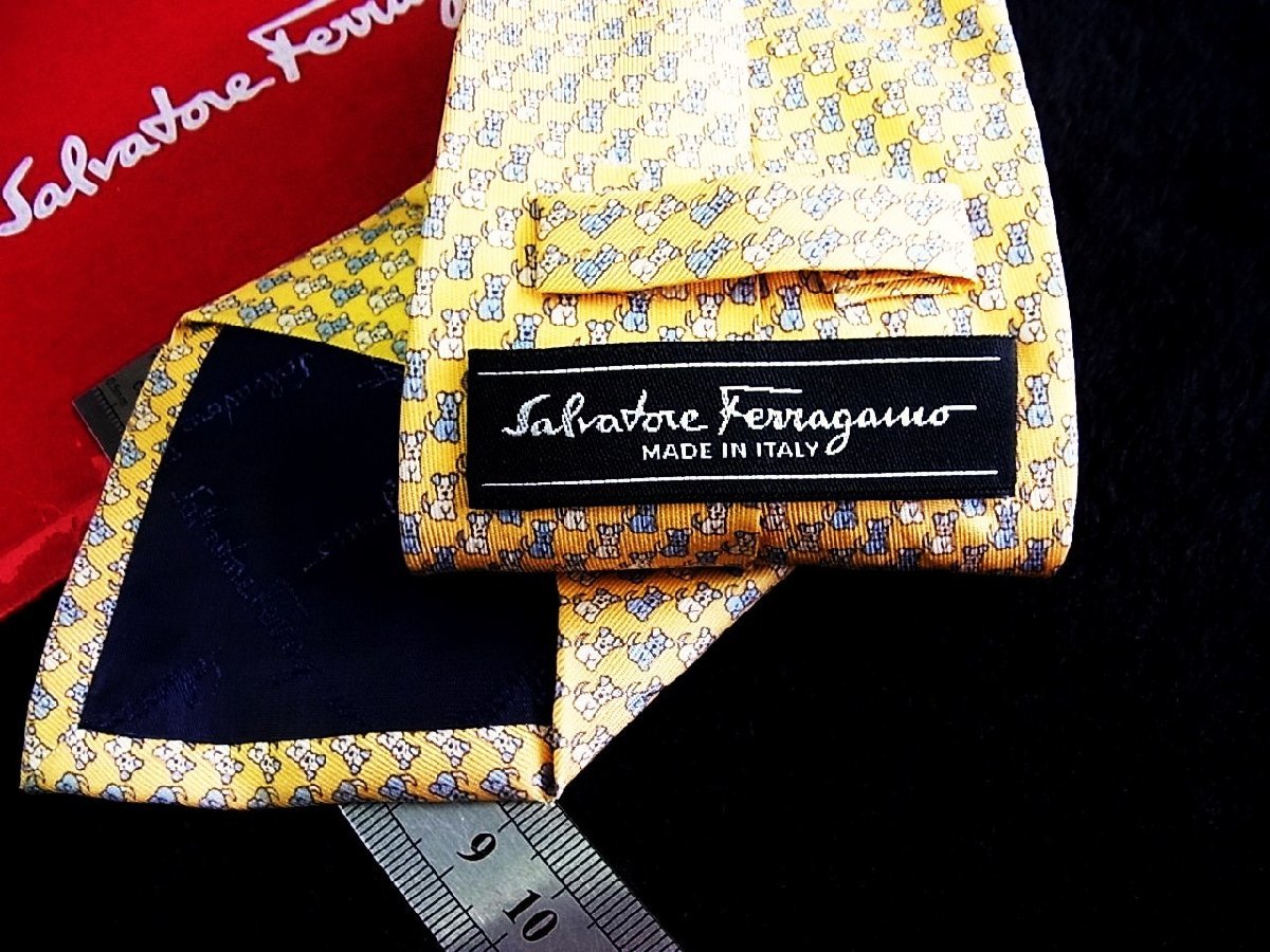 ★今週の特売★3718★高級ブランド【キャラ柄】★フェラガモ【犬 いぬ 動物 柄】ネクタイ★