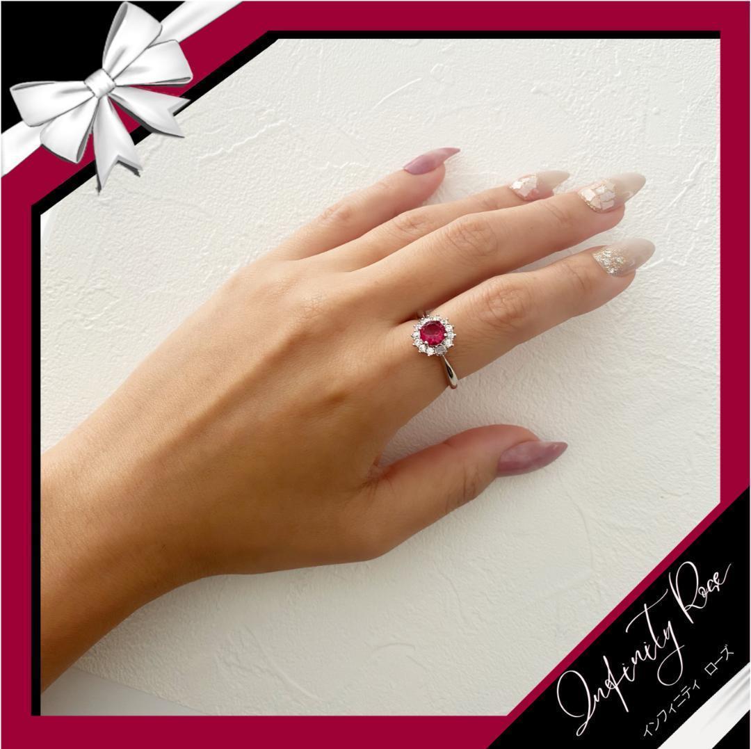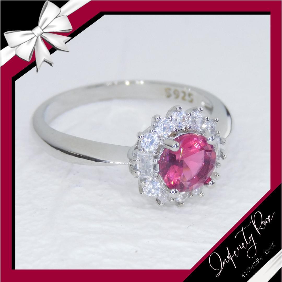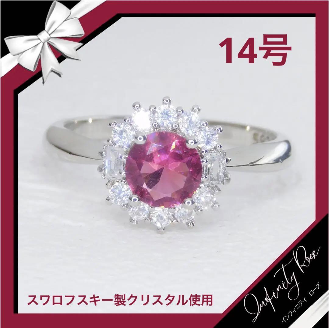 (R064S)14号 ローズピンクが素敵なコロンとクリスタルリング 爪留指輪 スワロフスキー製クリスタル使用
