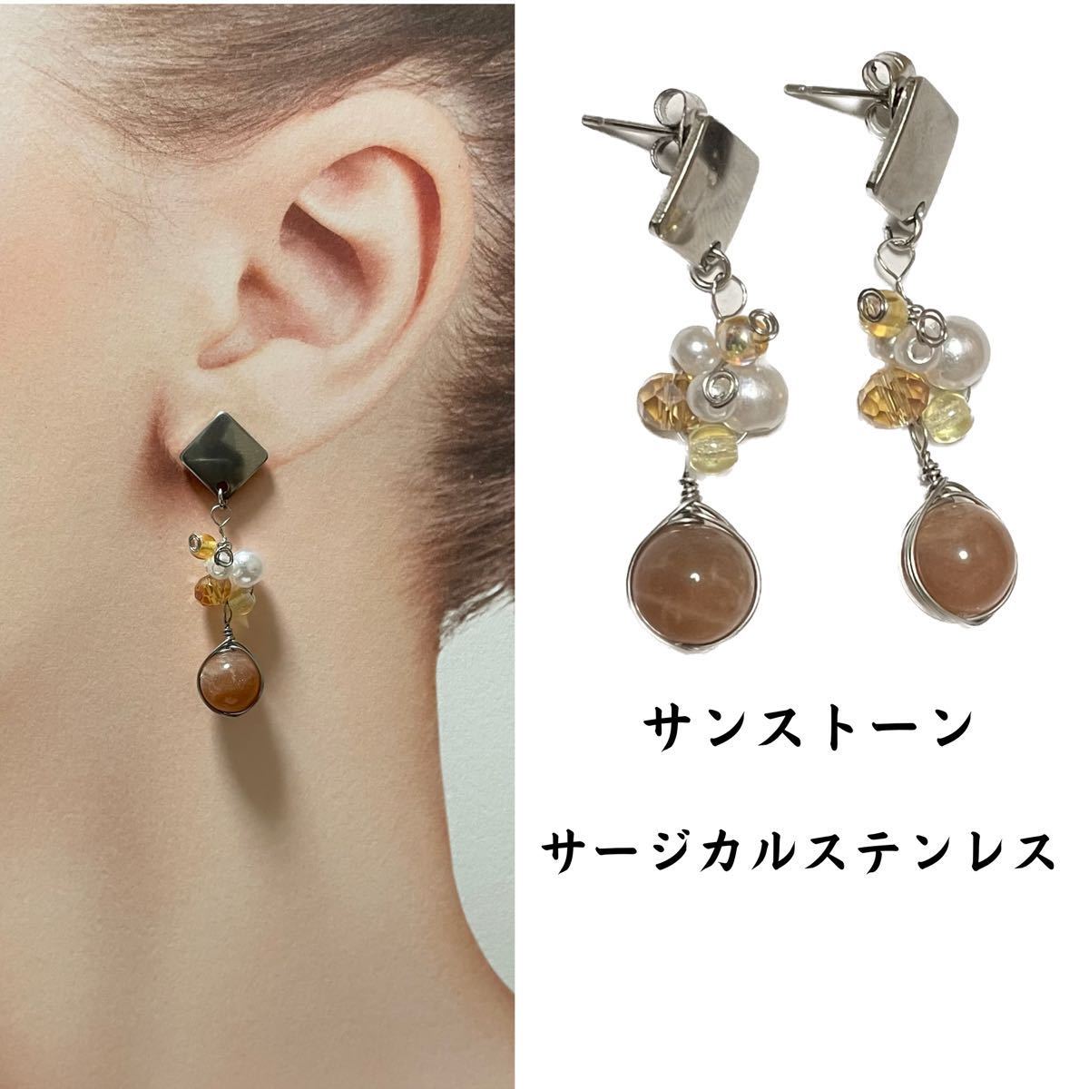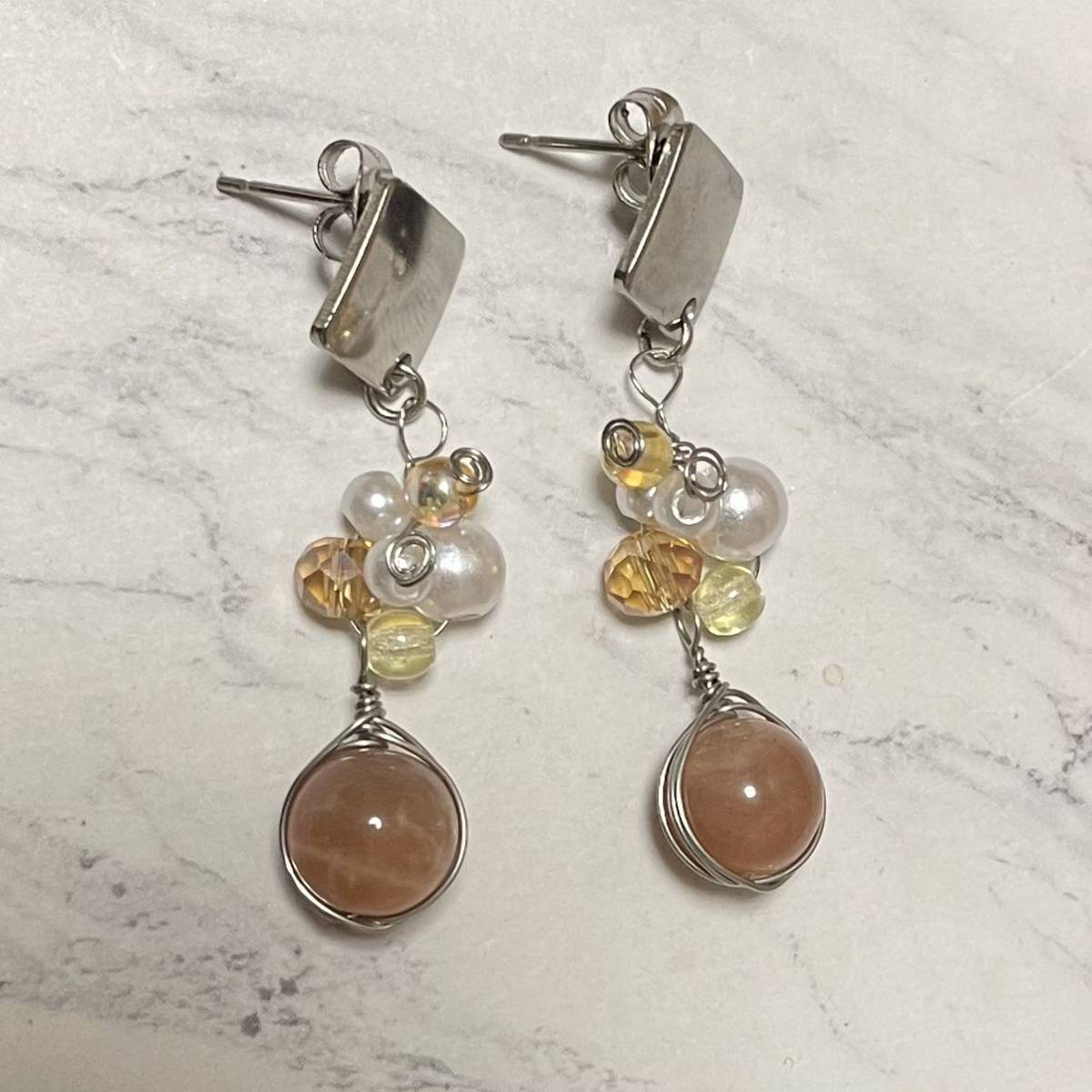 天然石とコットンパール、チェコビーズを使用したハンドメイドピアスです。