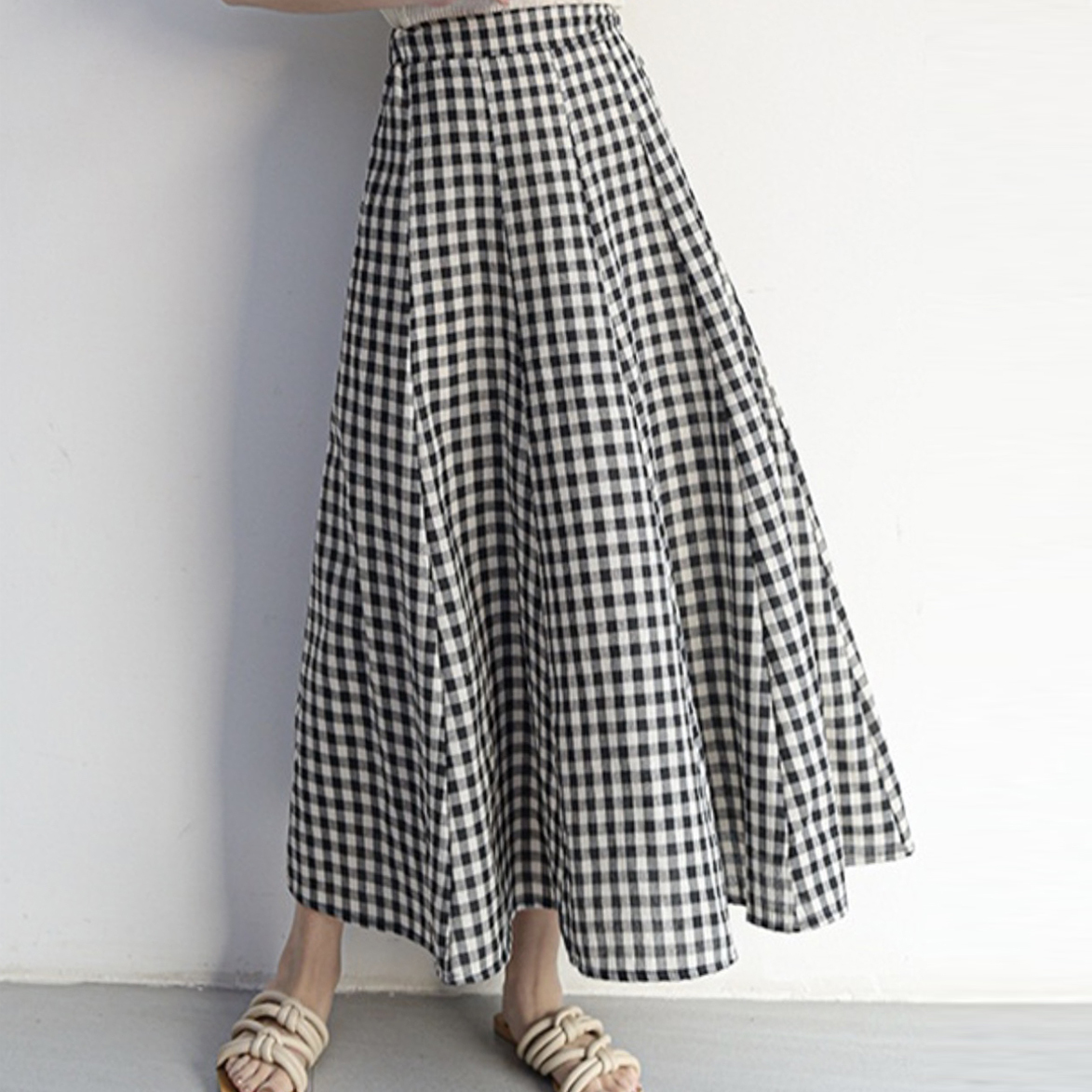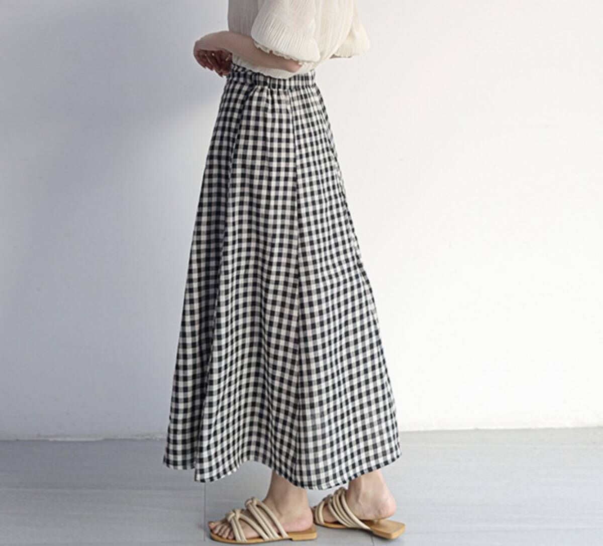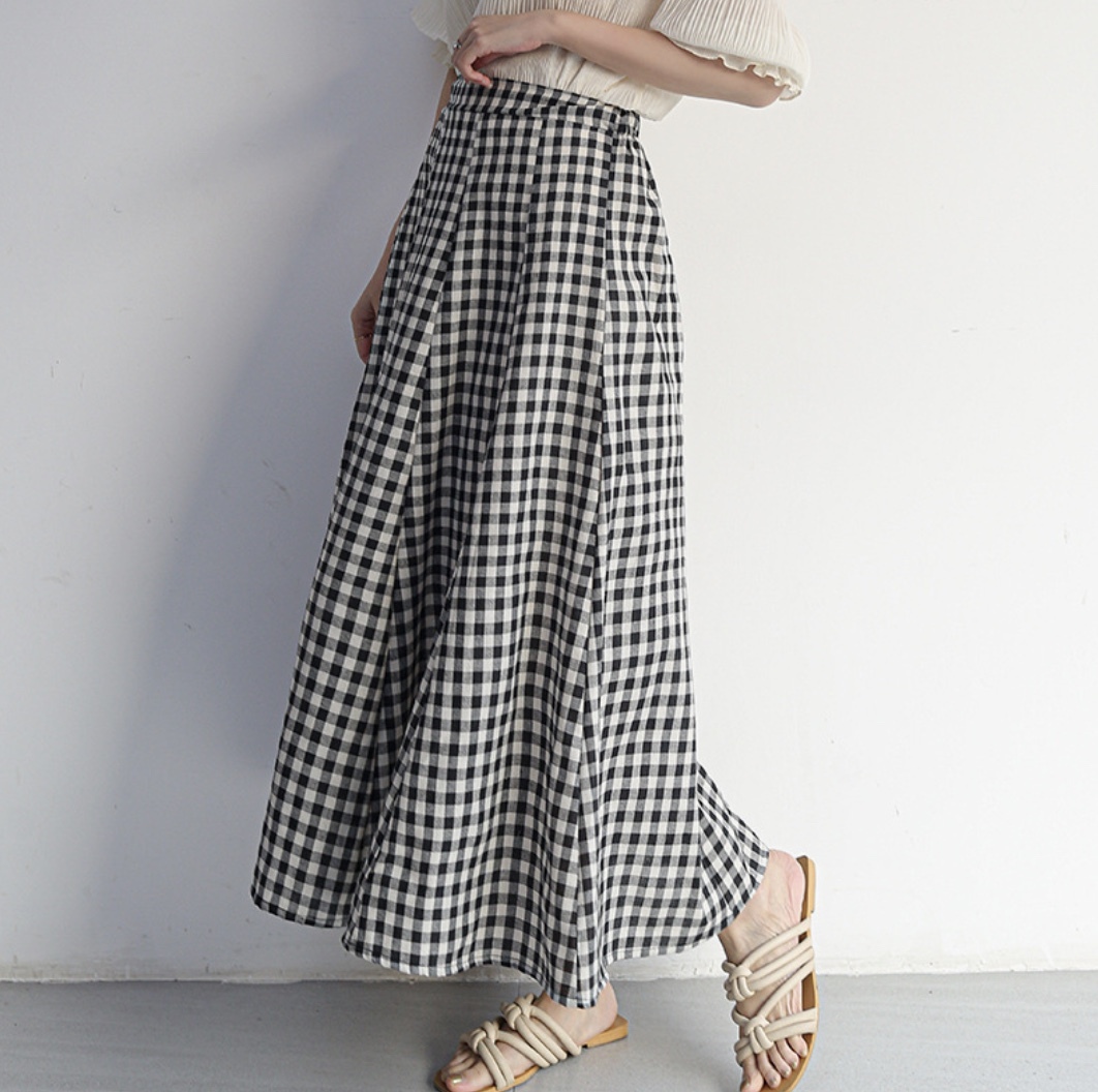 新品レディーススカート ギンガムチェック柄 Aライン ロング マキシ丈 Sサイズ free140