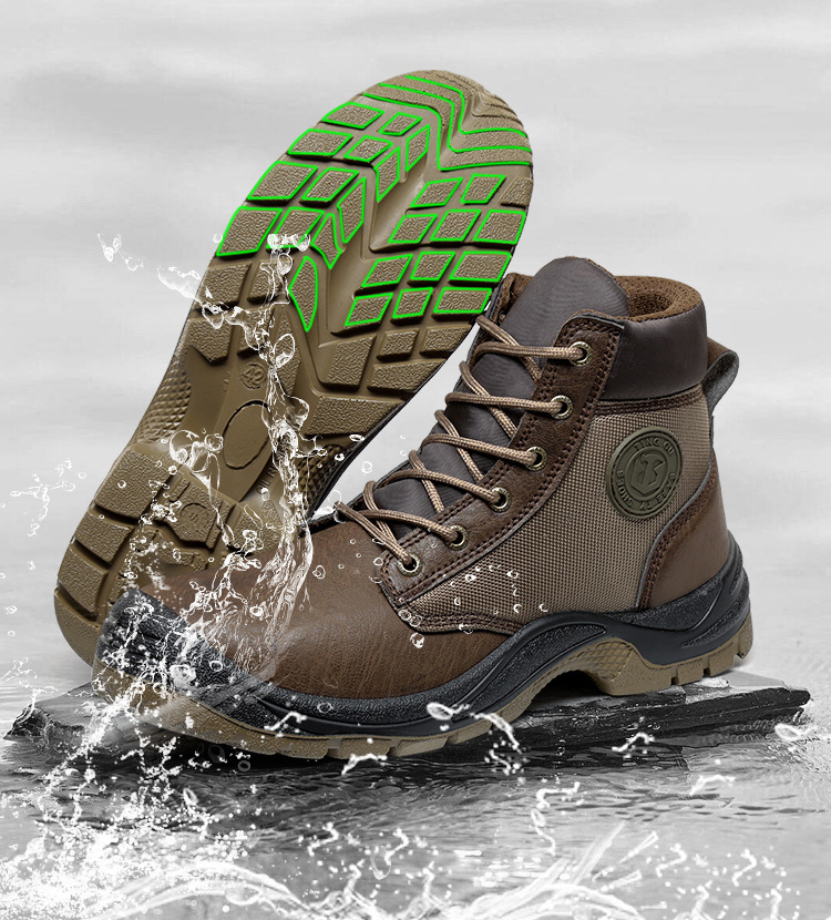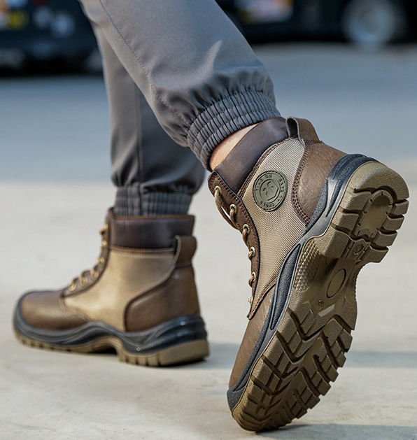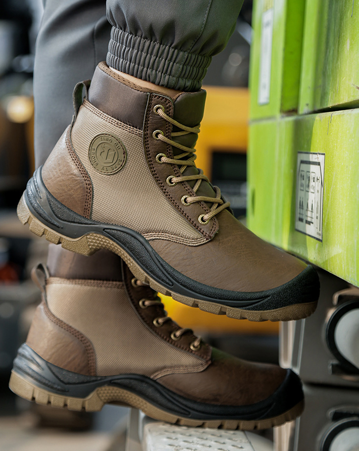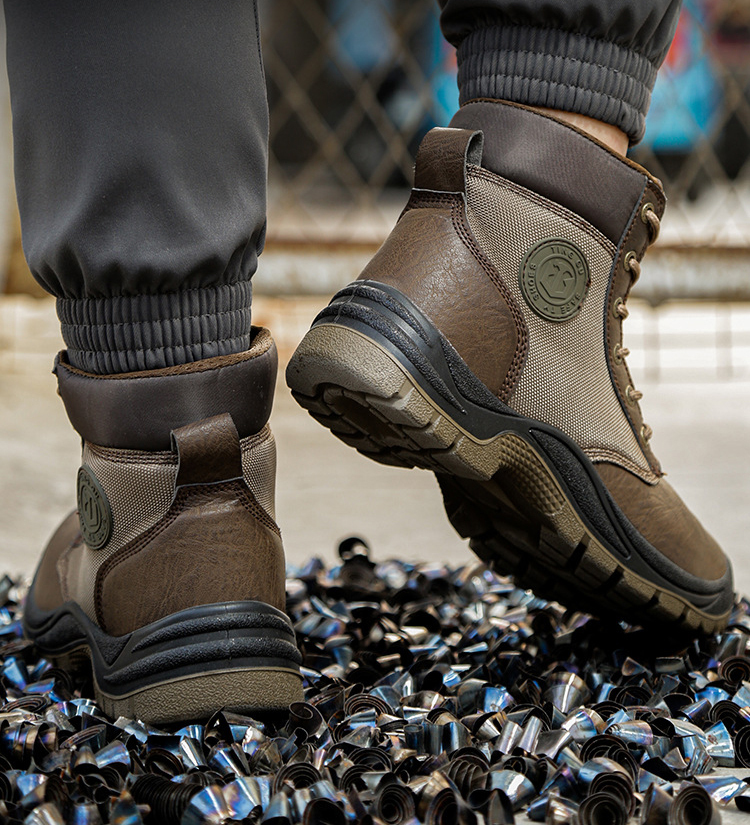 【通気、耐摩耗】アッパー素材には通気性と耐摩耗性に優れた合成皮革を使用し、同時に革の表面には防水加工を施しています。アッパーのデザインは安全性だけでなく、着用者の快適な体験にも配慮されています。