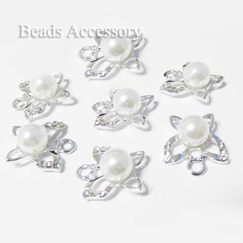 商品名:BA-0398 蝶々にパールとダイヤモンド 18×16mm シルバーカラー 9個