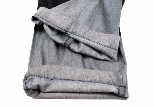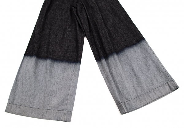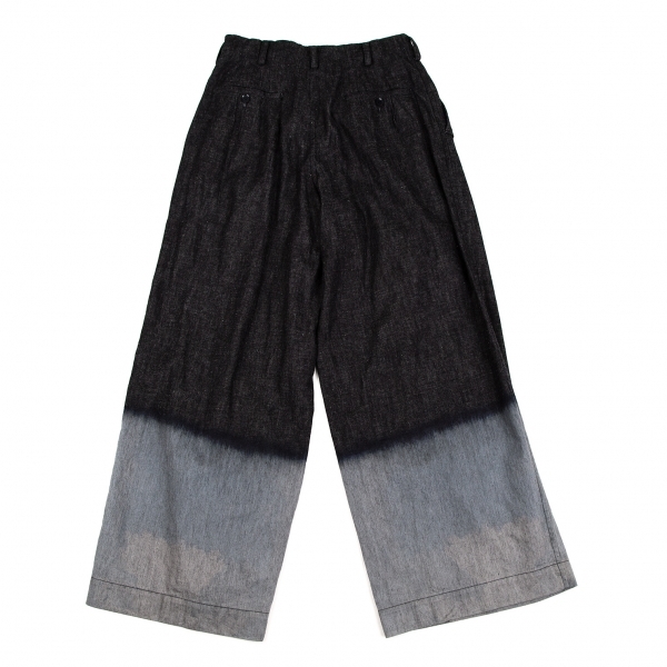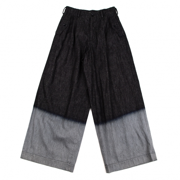 ワイズY's コットンリネン脱色切替ワイドパンツ インディゴ1 |