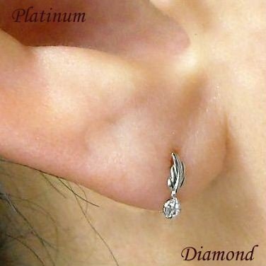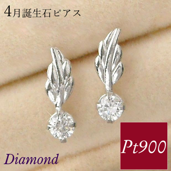 ダイヤモンド ピアス 天然石 4月誕生石 プラチナ レディース 50代 40代 60代 30代 20代 天使の羽 一粒 両耳 pt900 羽根 女性用